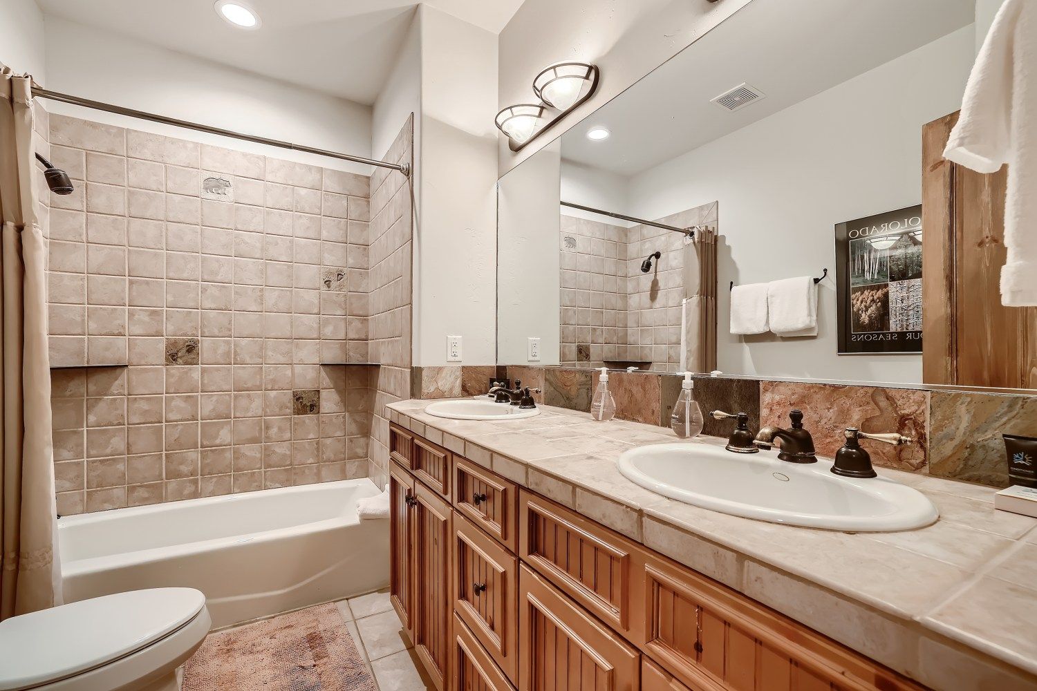 - Bathroom: full bathroom with tub/shower, 2 sinks.