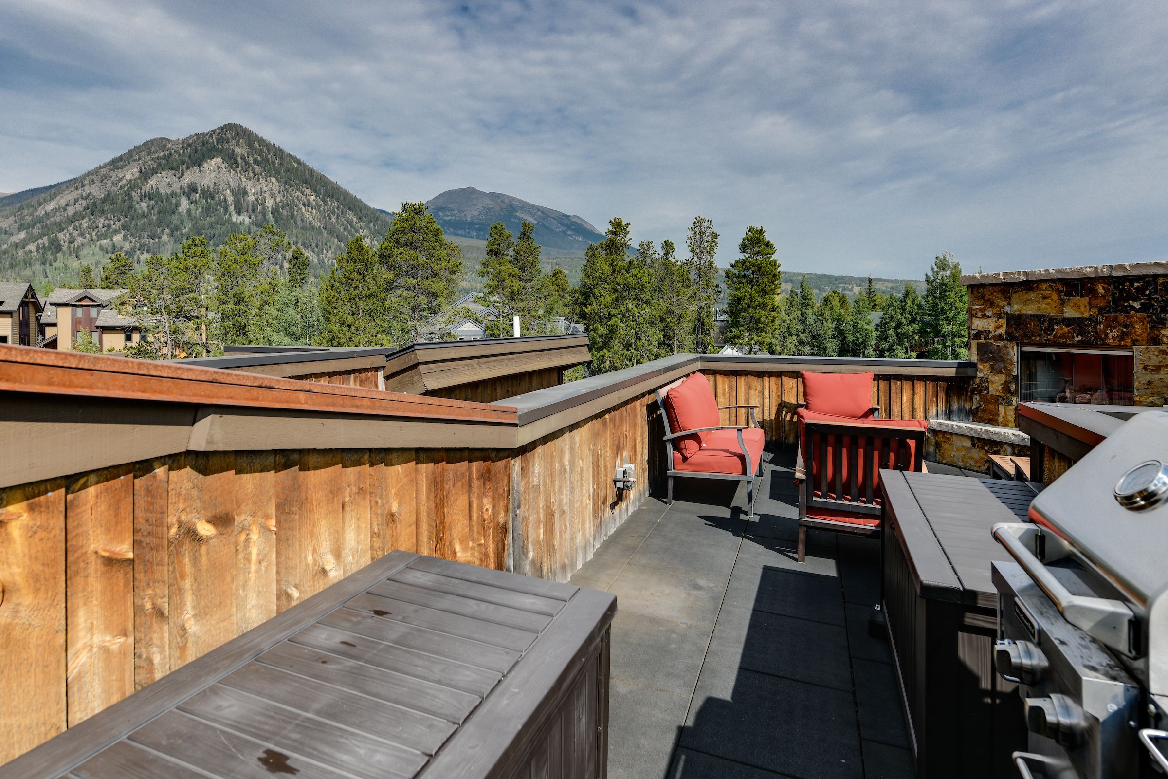 The rooftop patio (not available in winter) is the cherry on top of this high-end home. With comfortable furniture, a gas fireplace, gas grill, and incredible 360-degree views, you’ll be living the dream from this beautiful Colorado getaway.