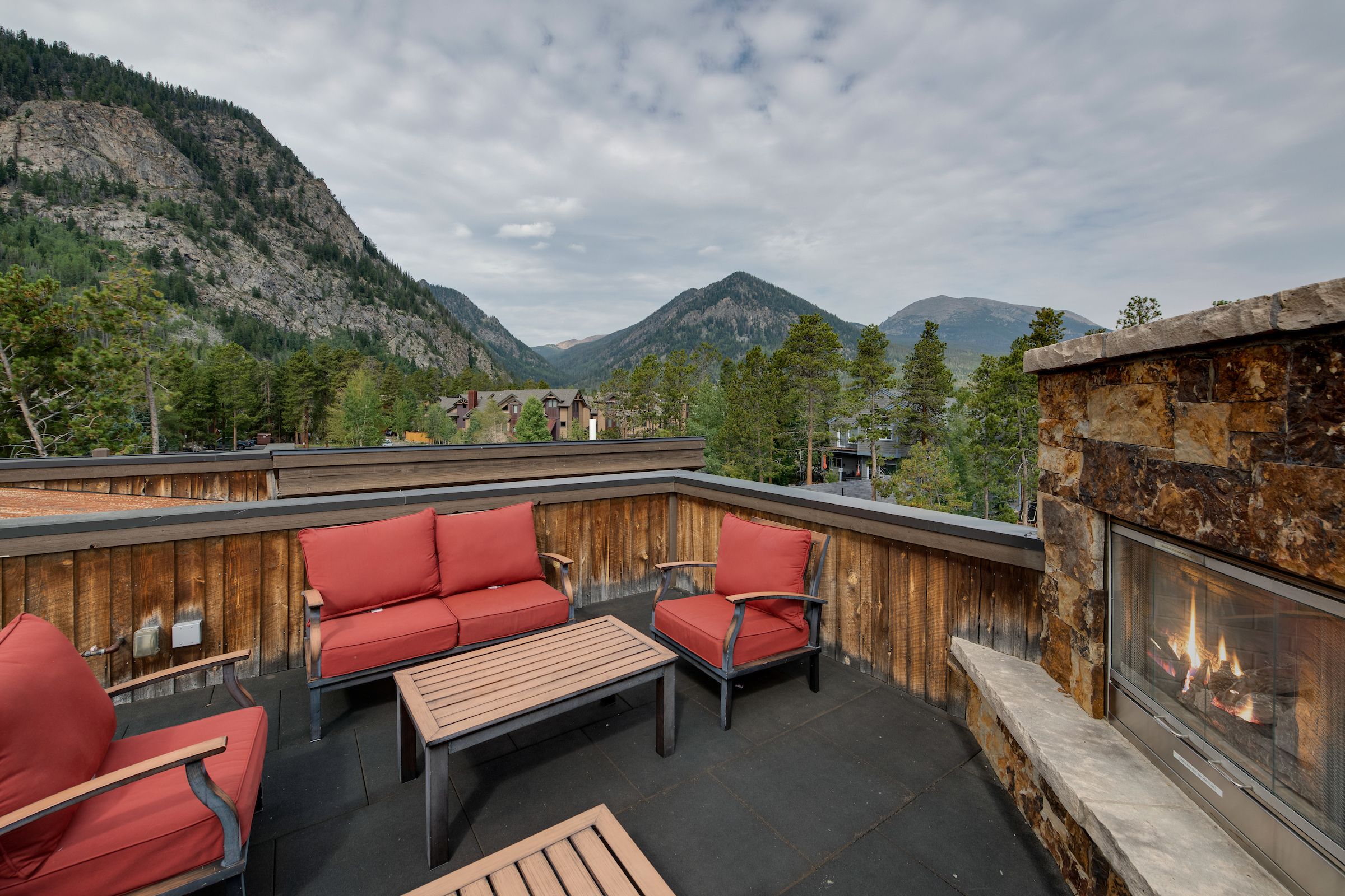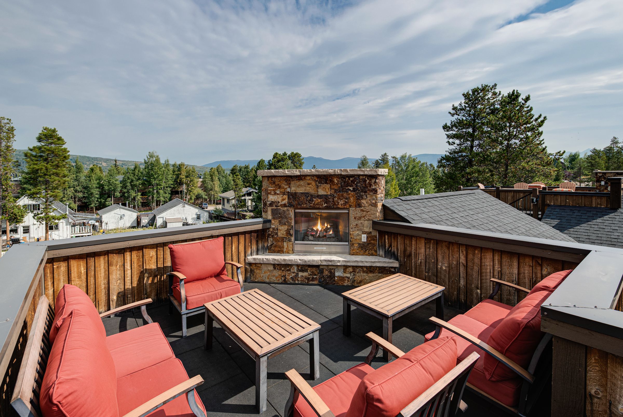 Sitting next to the roaring gas fireplace on the rooftop deck, you pop the cork on a vintage bottle of wine as the sun slowly sinks behind the jagged ridgeline of Mt. Royal. You sink into the cushions of the patio furniture and take in the incredible 360-degree views as the steaks sizzle on the nearby grill. As darkness approaches, the soft sounds of the Rocky Mountain night are drowned out by the laughter of your friends recapping today’s epic adventure. You think to yourself: “Now this is Colorado.”