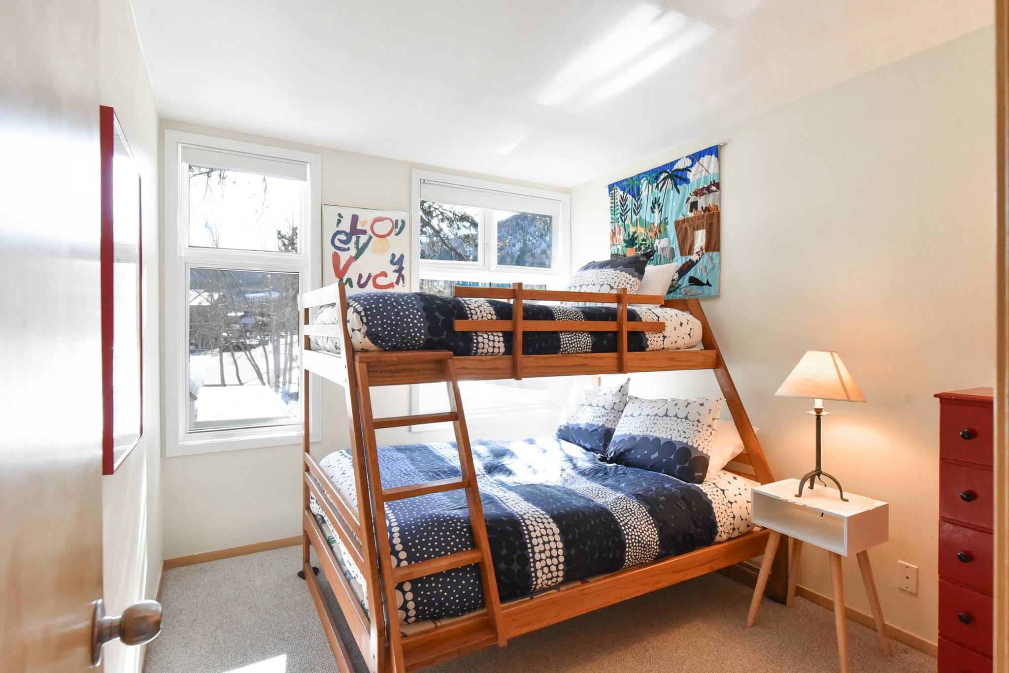 - Bedroom 2: twin-over-queen captain's bunk bed.