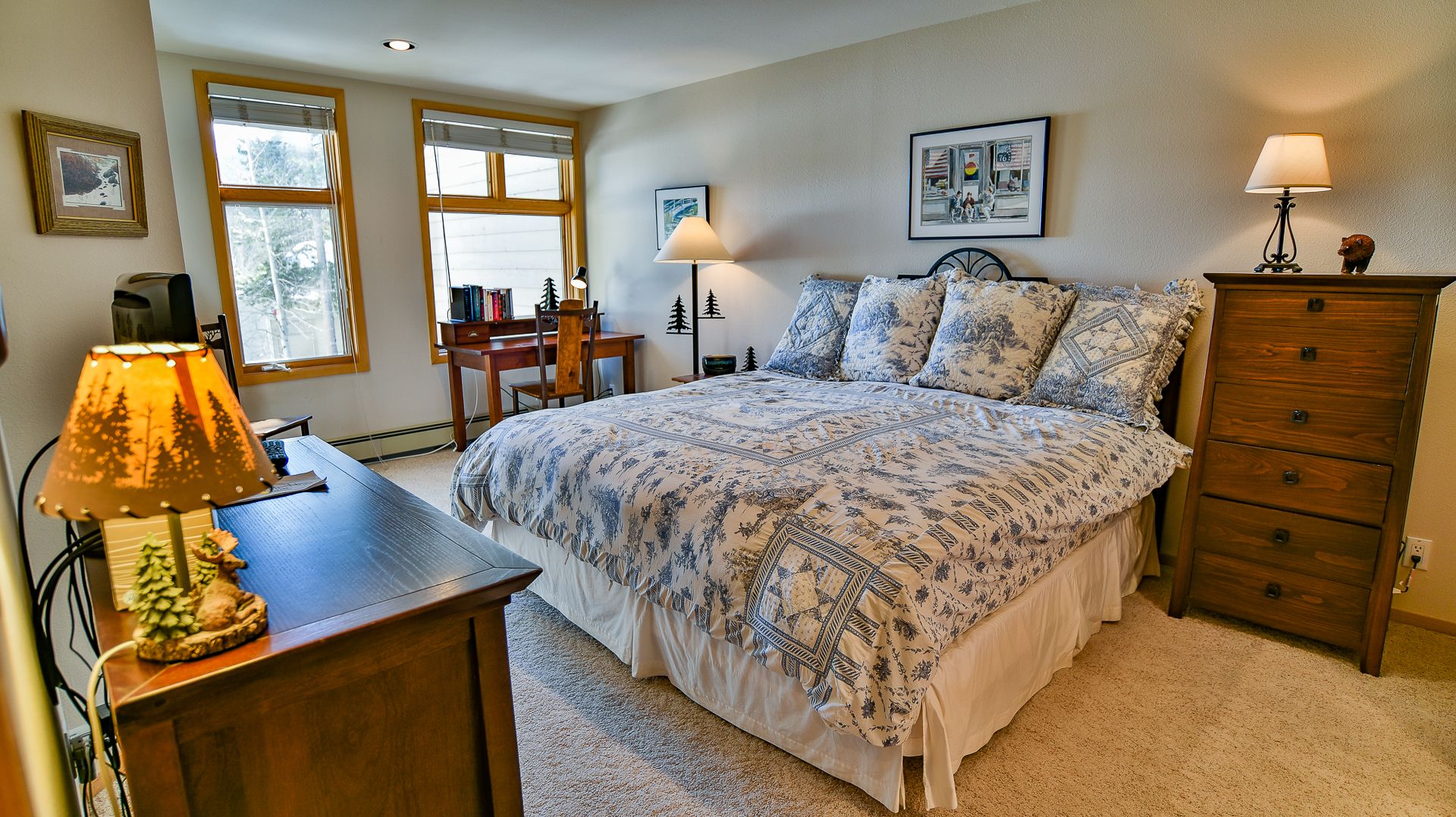 - Master Suite: king bed, private bathroom with tub/shower, flat-screen TV.