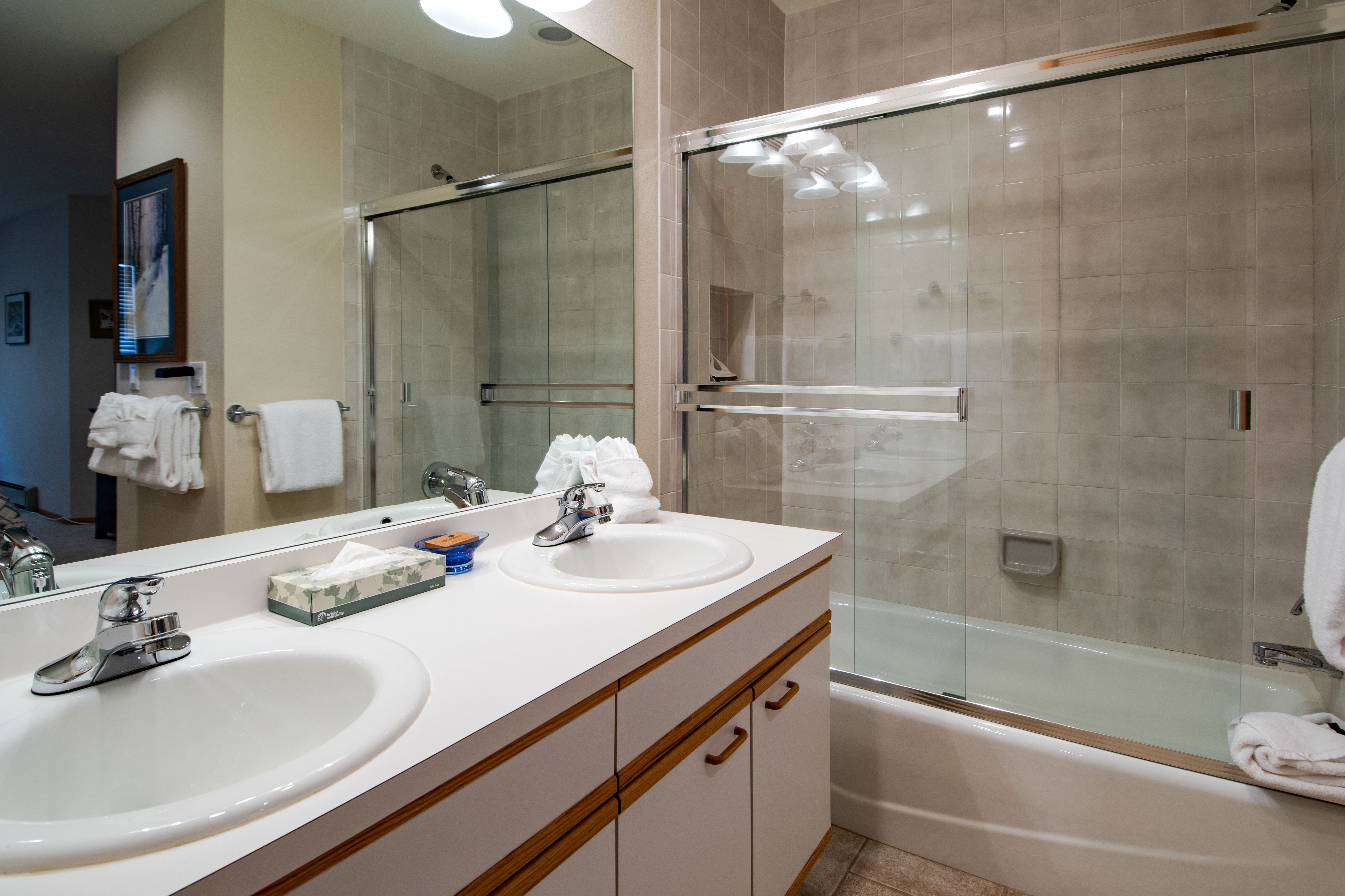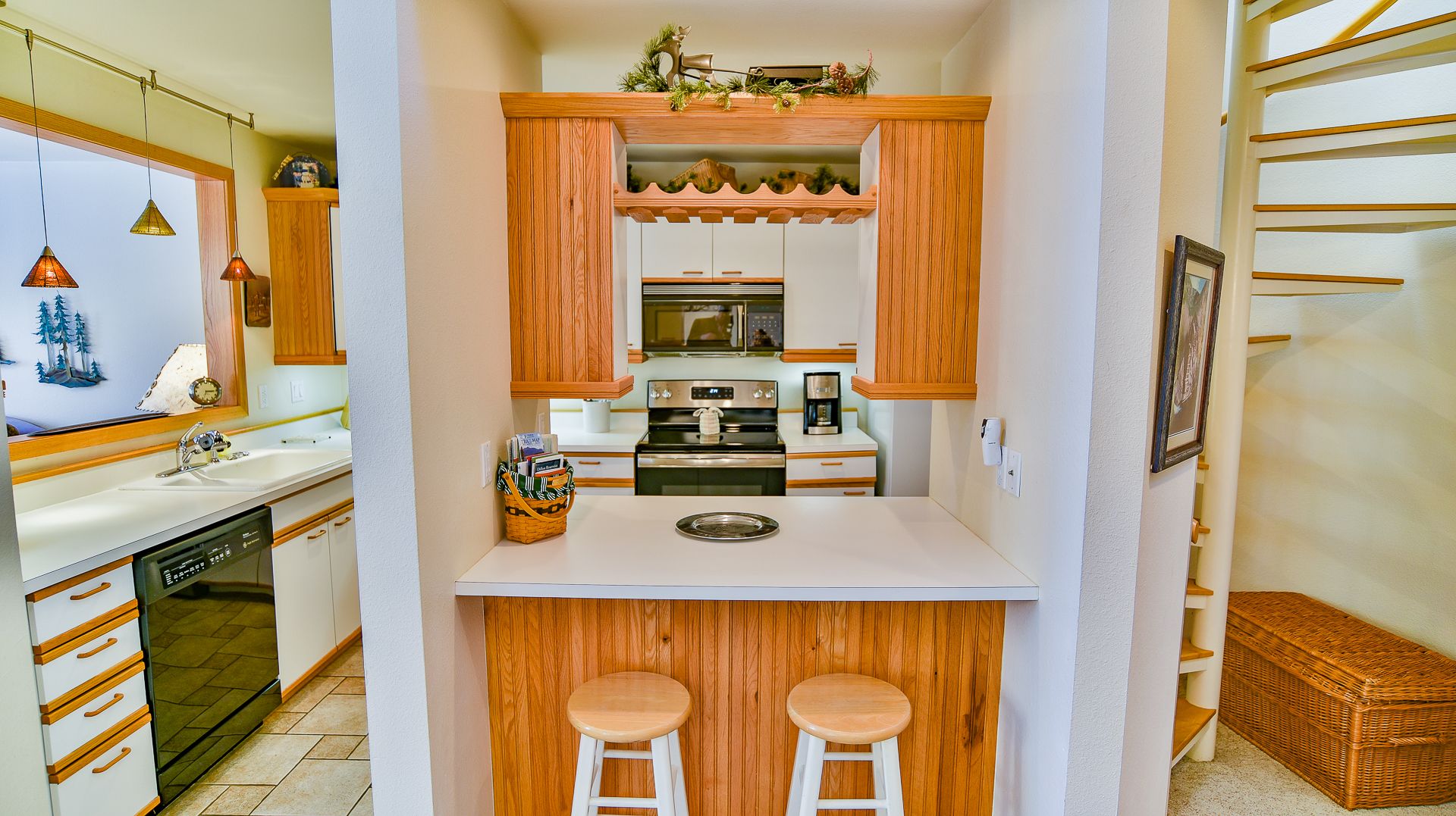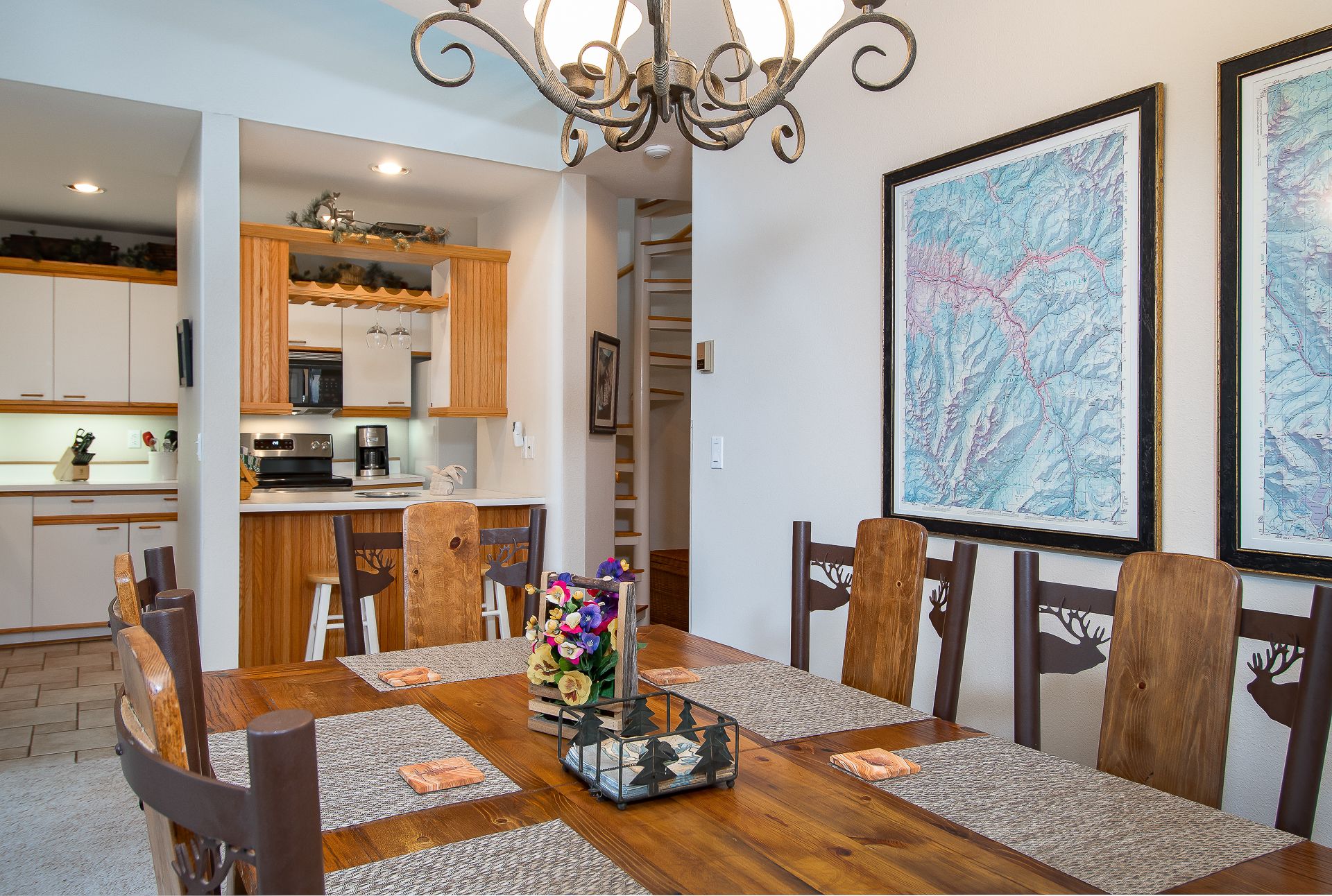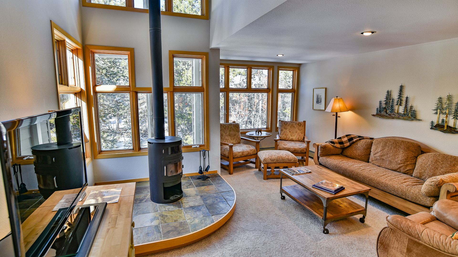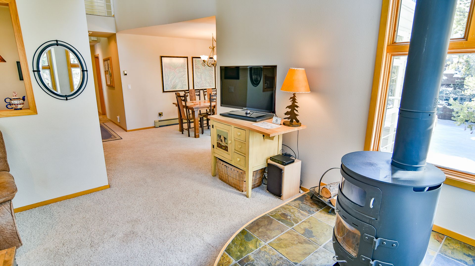 Just kick back and chat about the day’s mountain adventures or enjoy a movie on the flat-screen TV. And there’s a fully equipped kitchen with room for six at the dining room table and two more at the breakfast bar.