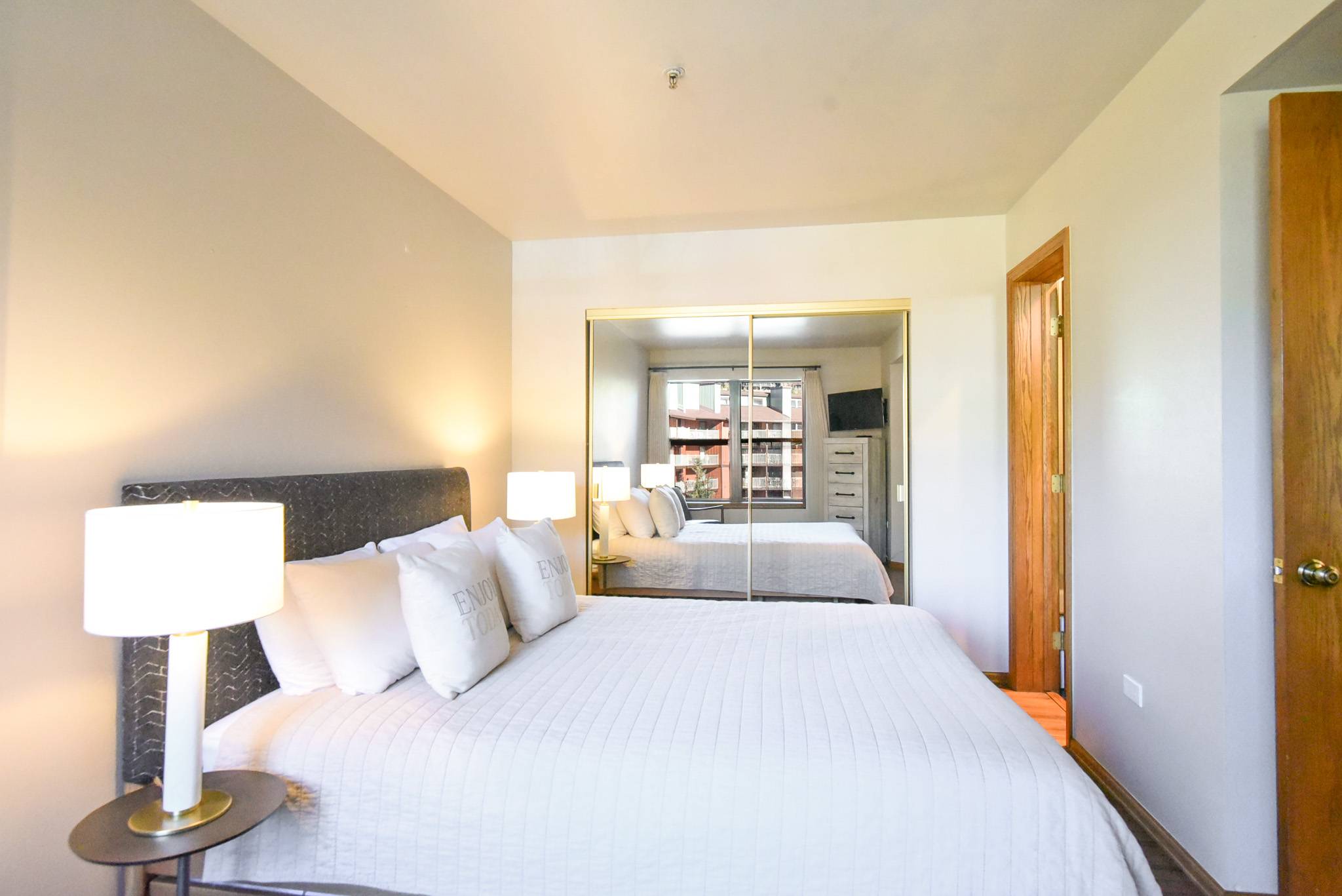 - King master suite: king bed, flat screen TV, private bathroom with steam shower/tub. (sleeps 2)