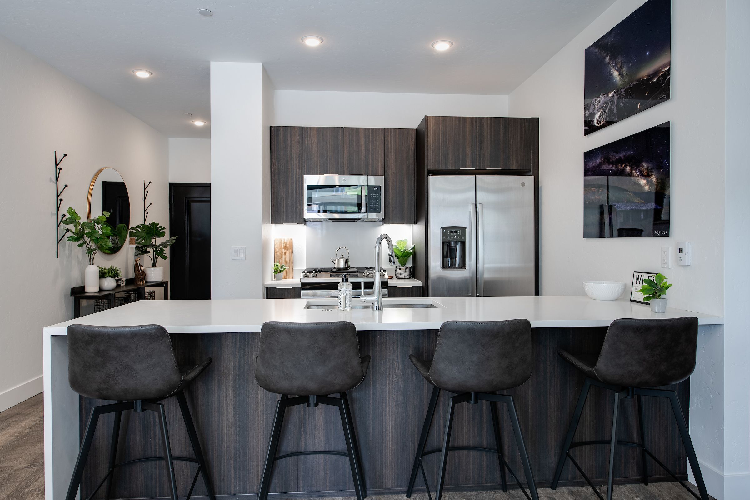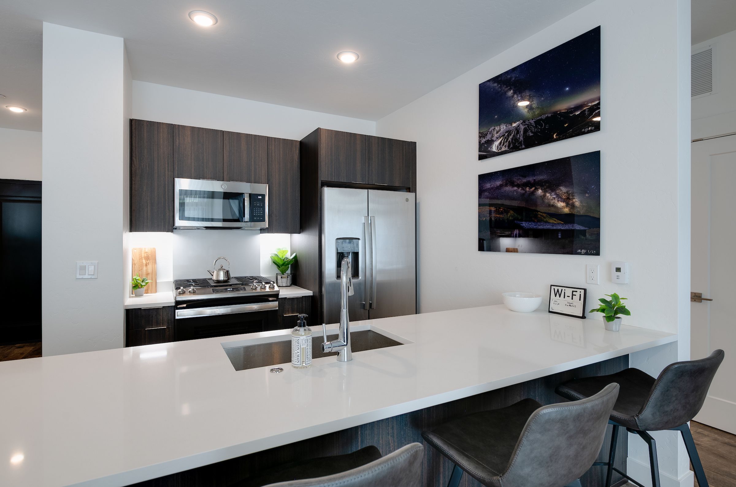 Other amenities include an in-unit washer and dryer, complimentary Wi-Fi, and covered parking for one vehicle. Plus, all Summit Mountain Rentals properties are professionally cleaned and inspected before each arrival and are stocked with hotel-like toiletries and linens. Our helpful staff is also available 24/7 should you need anything.