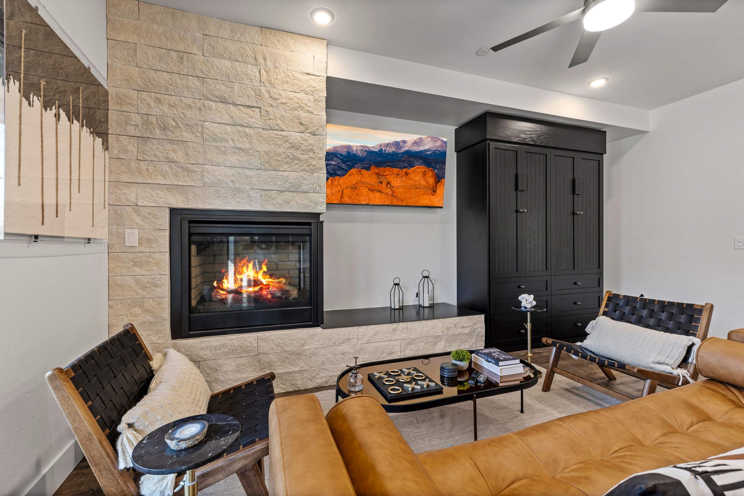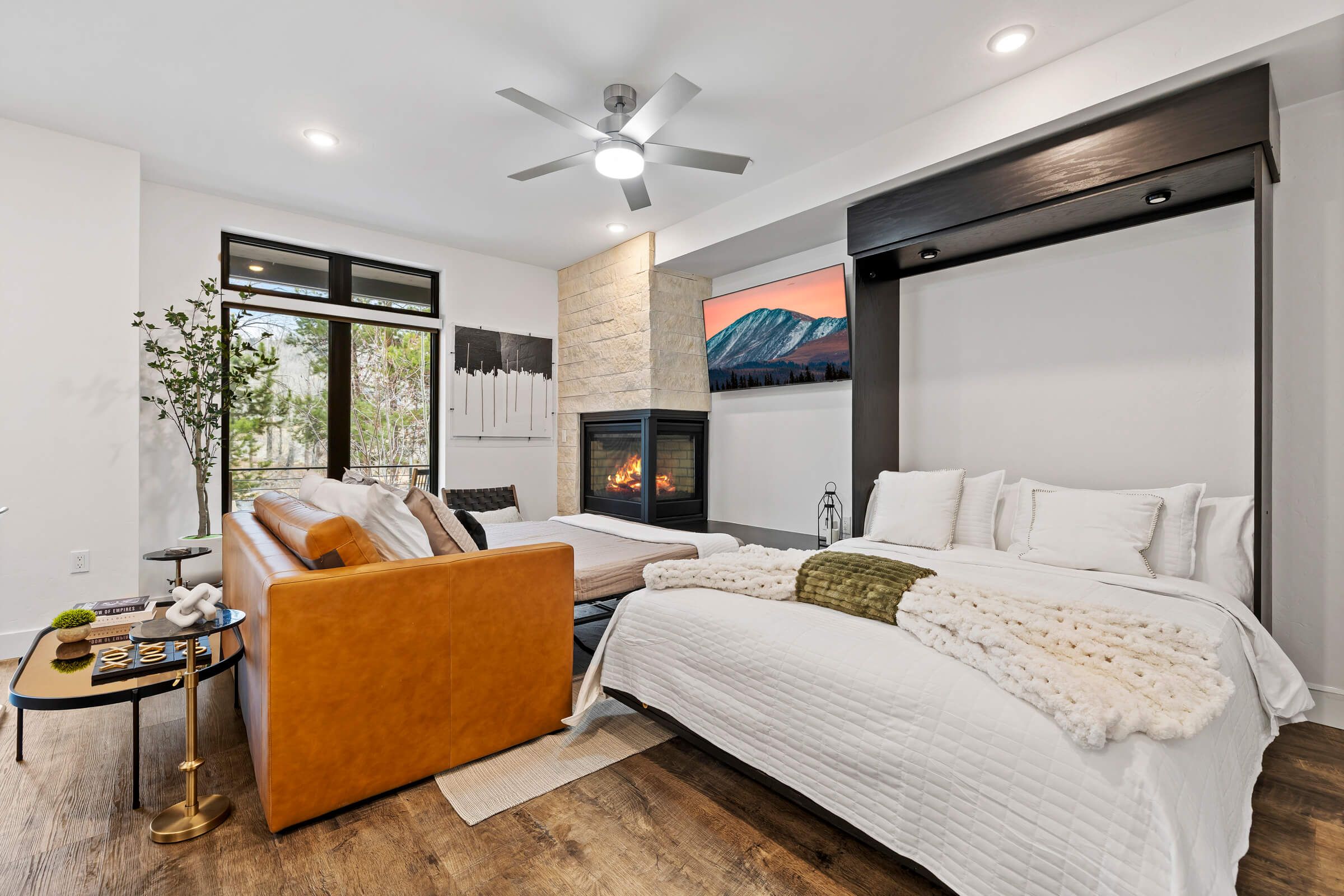 • Living Area: Queen Sleeper Sofa, Queen Murphy Bed, Smart TV, Gas Fireplace. (Sleeps 4)