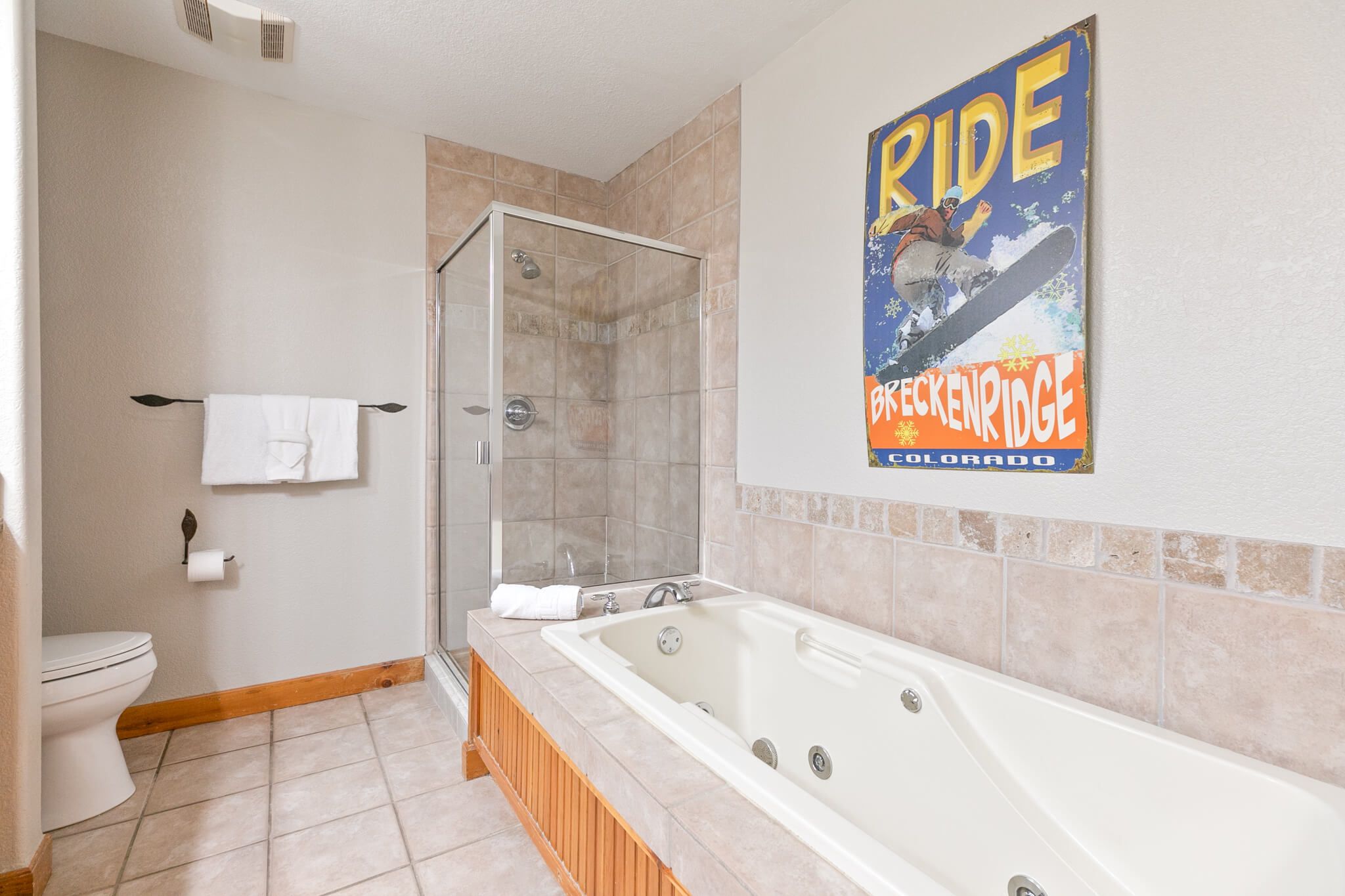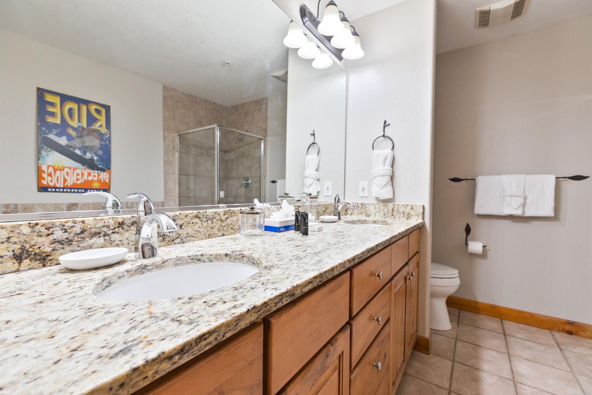 This cool condo is steps from the Snowflake Lift, and you can walk or catch the convenient shuttle bus to all the shops and restaurants on Breckenridge’s historic Main Street. Ski to the lift in the morning, ski in for lunch, and be back on the lift in minutes. This place is a perfect choice for your Breck getaway!