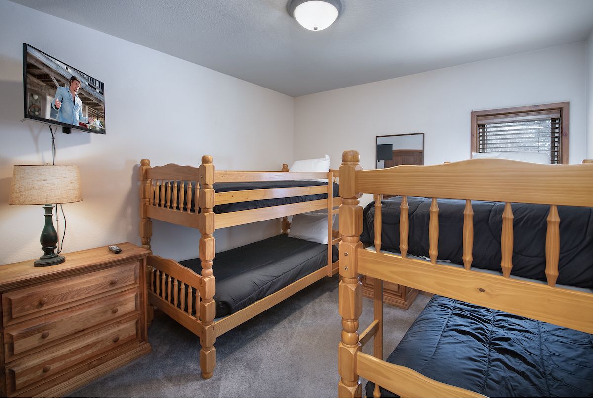 - Bedroom 3: 2 twin bunk beds, flat-screen TV. (sleeps 4)