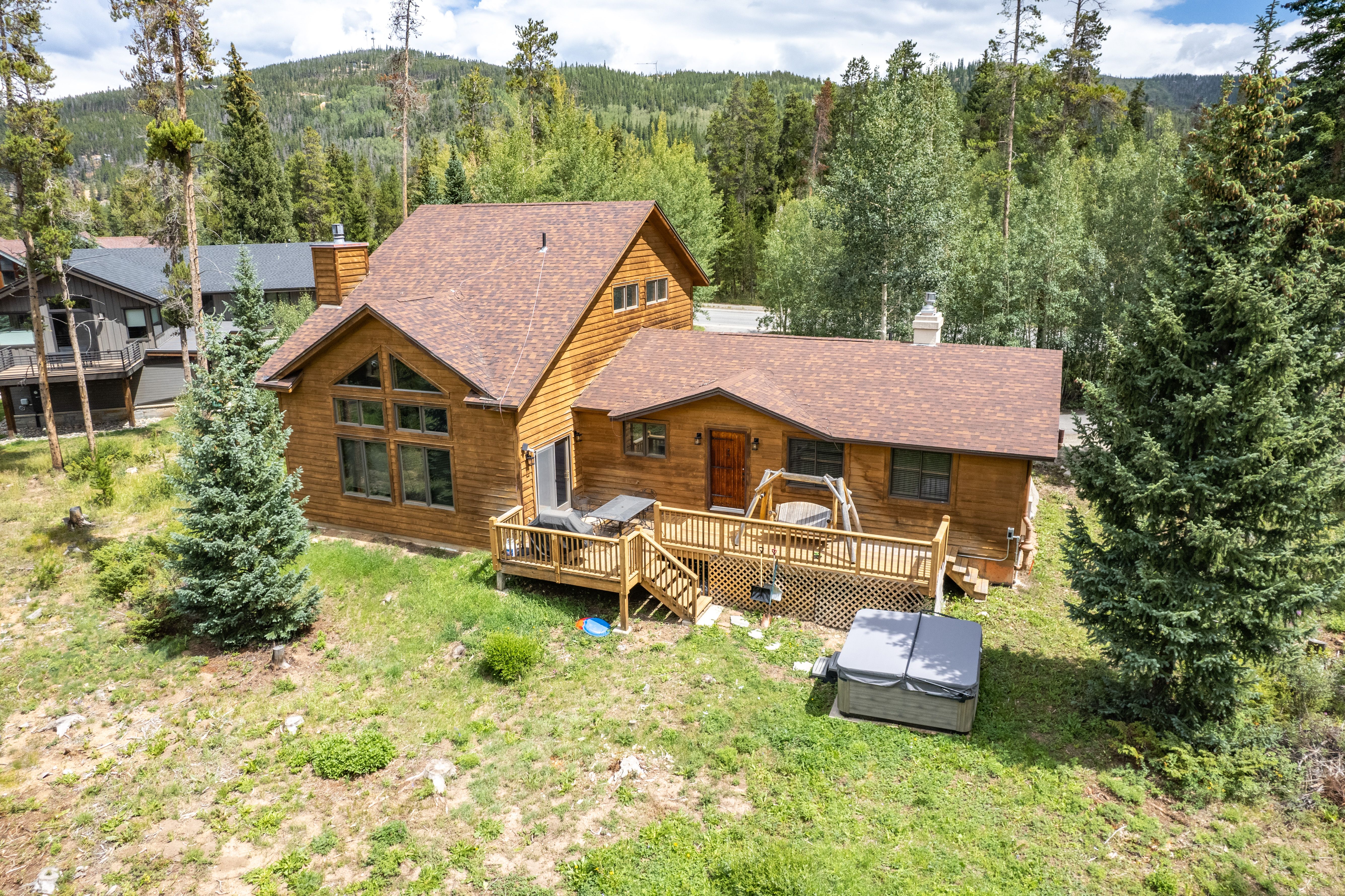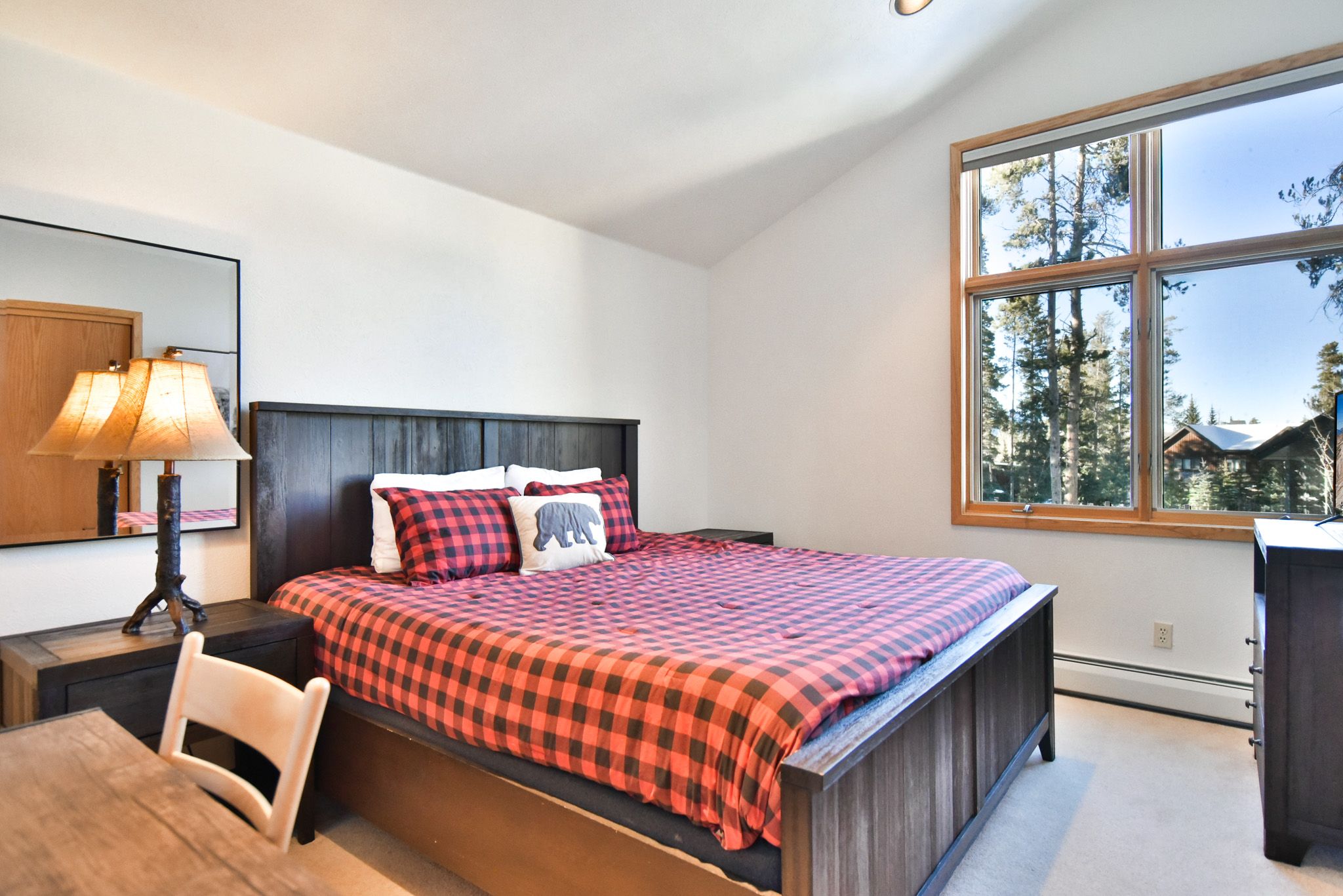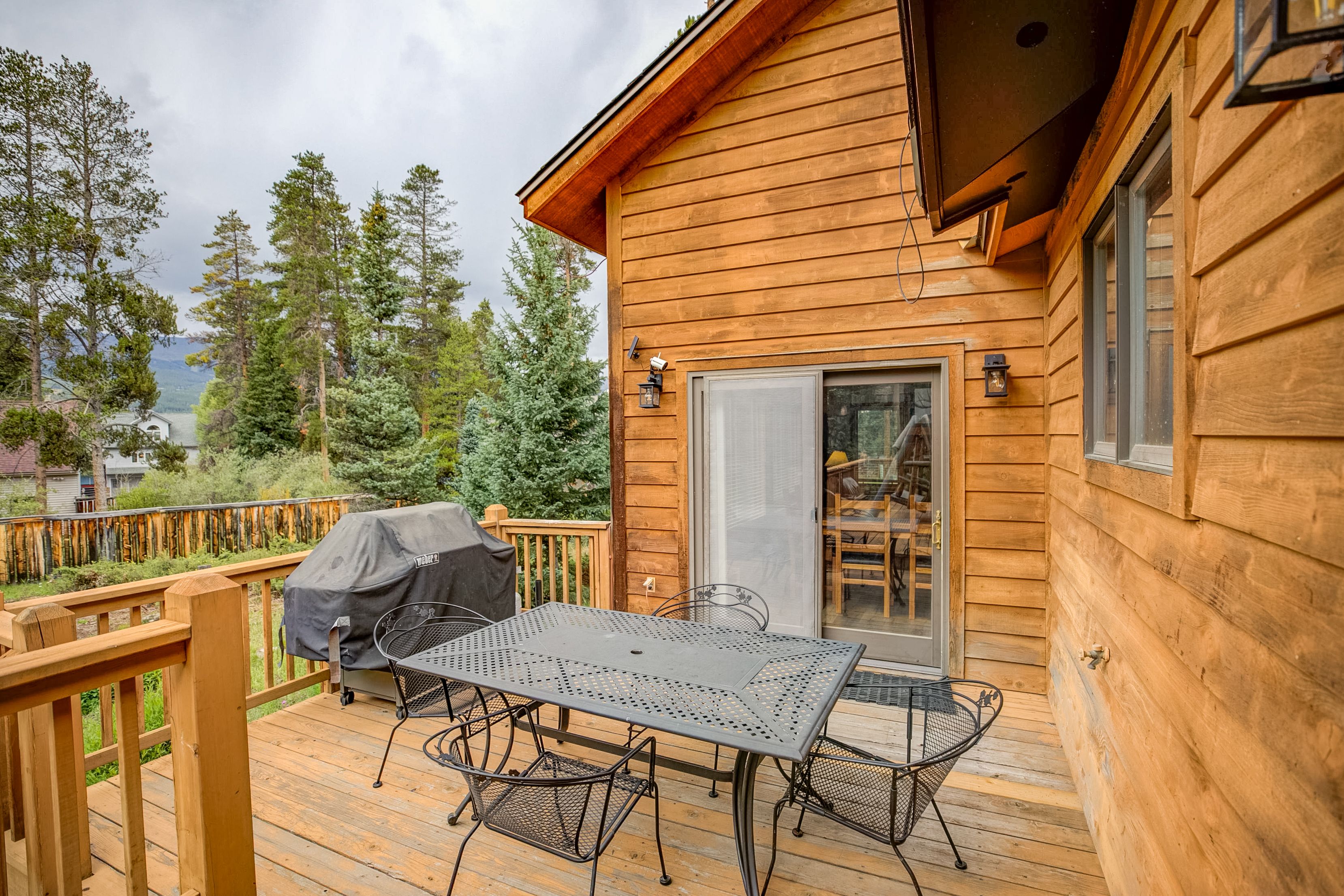 The kitchen features granite counters, stainless-steel appliances, and all the gear you’ll need to whip up everything from après-ski snacks to memorable holiday meals. The dining table seats six, and there’s room for two more at the counter. Outside, you’ll enjoy a spacious deck, a gas grill, private hot tub and seating to take in the mountain air.