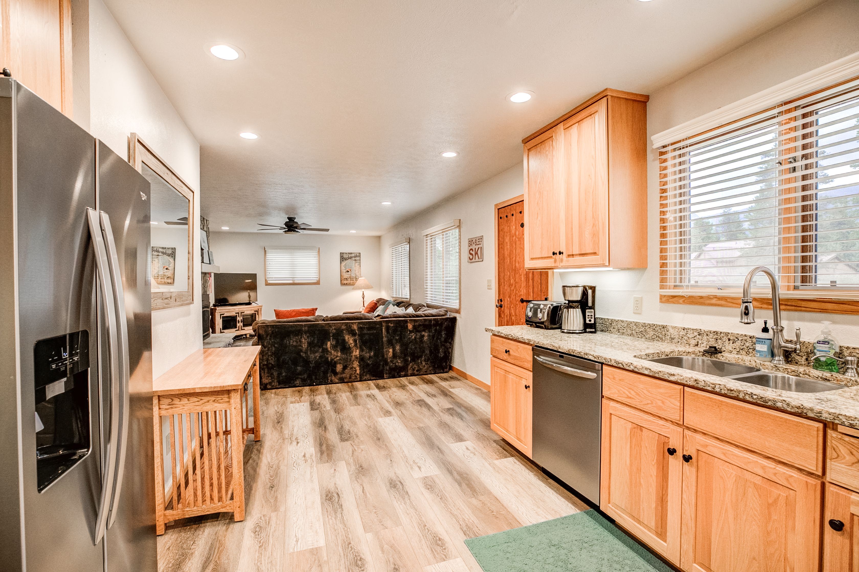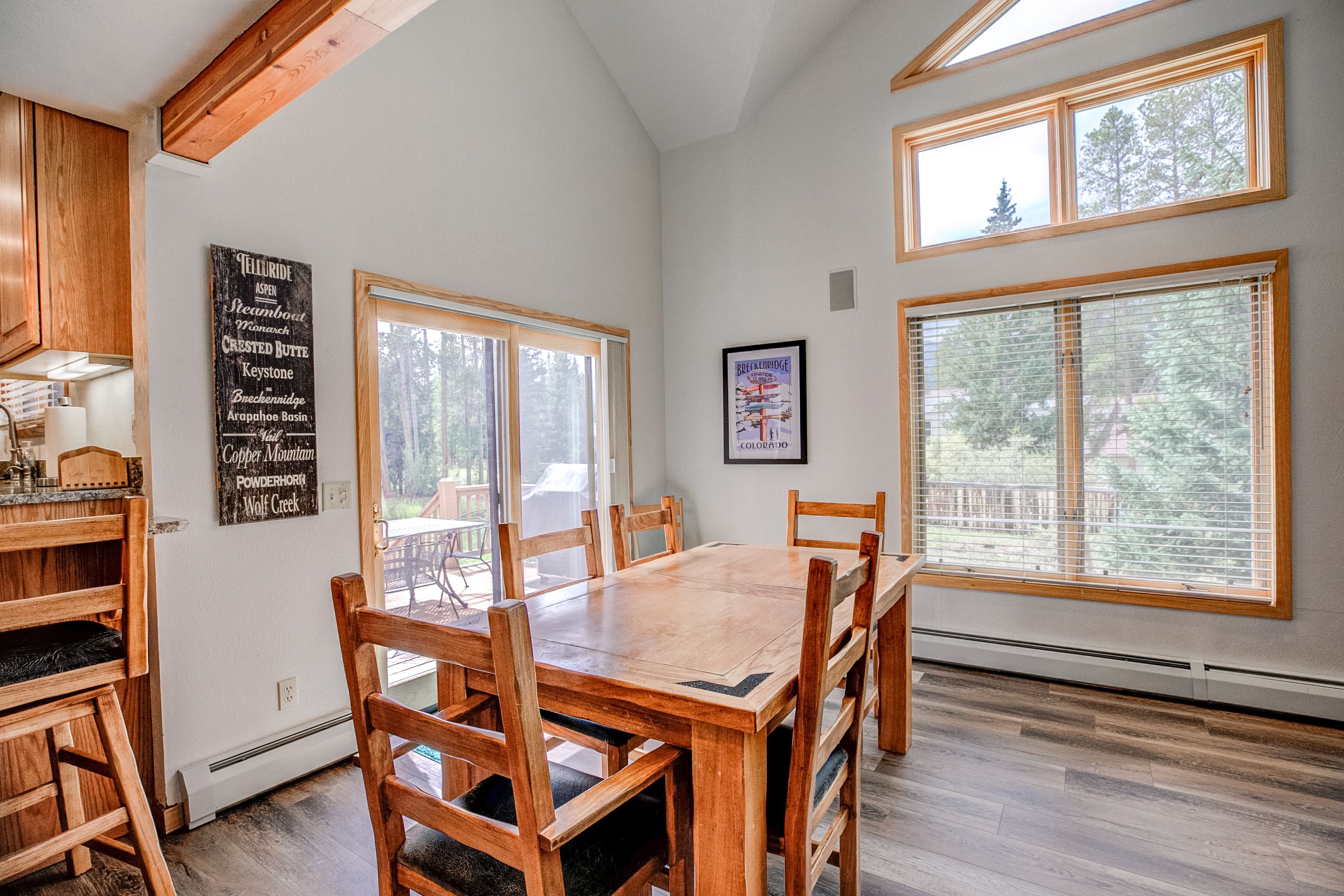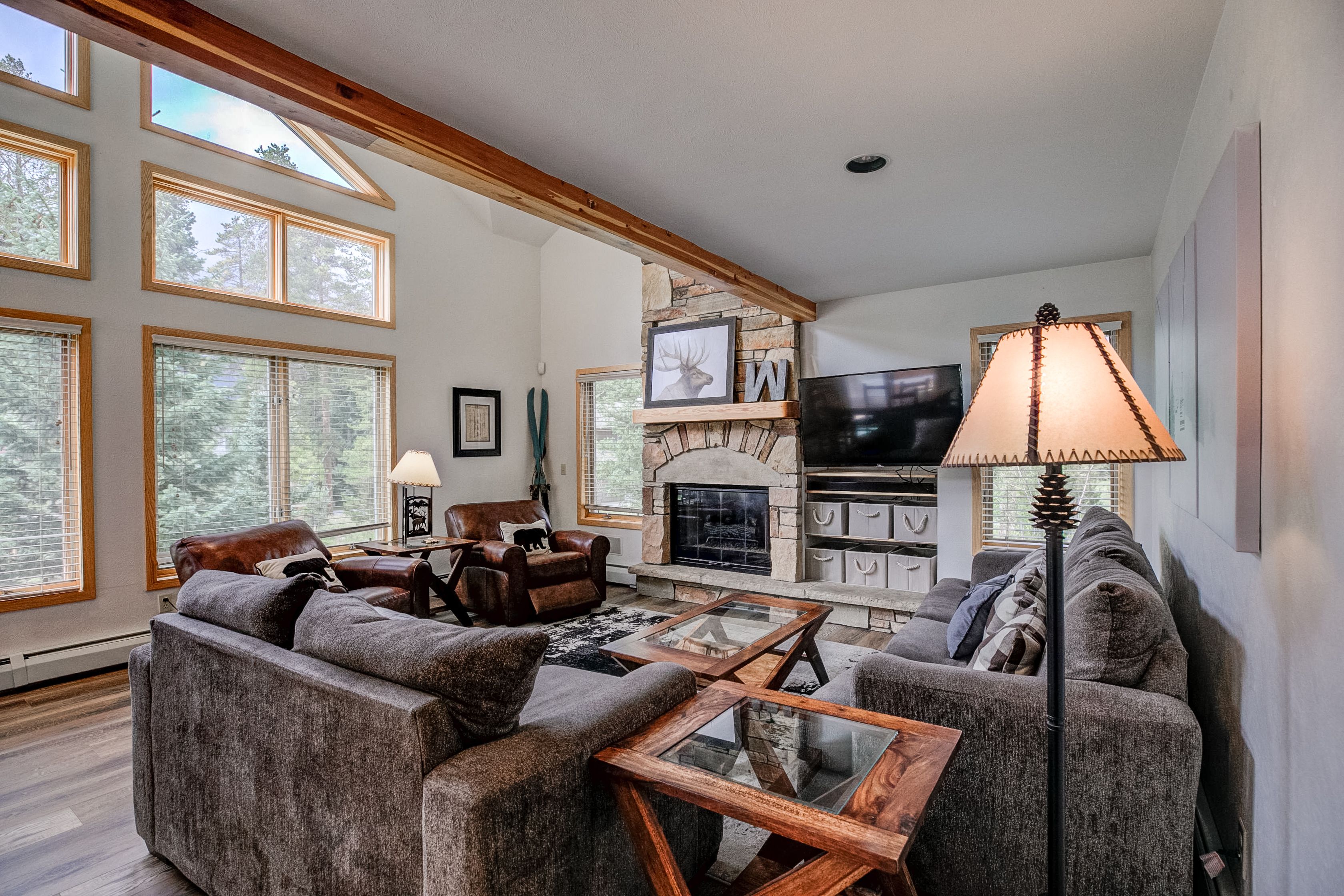 Now here’s a large, comfortable home with plenty of room for everyone to stretch out and relax. It’s in a quiet Breck neighborhood with lots of trees … and it’s just two blocks from the free shuttle stop taking you to the ski area base and Main Street. It’s a place you and your group will want to come back to year after year!