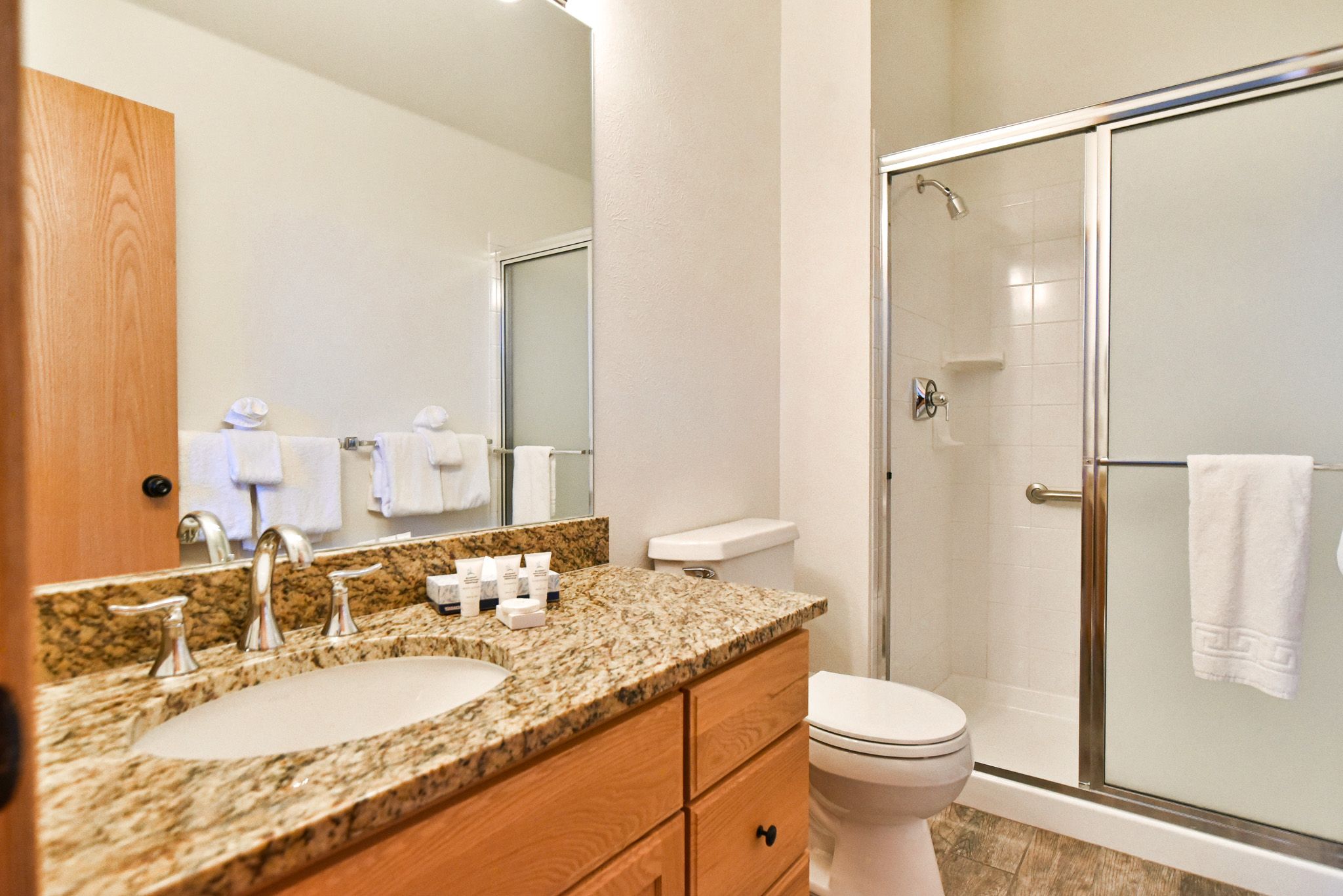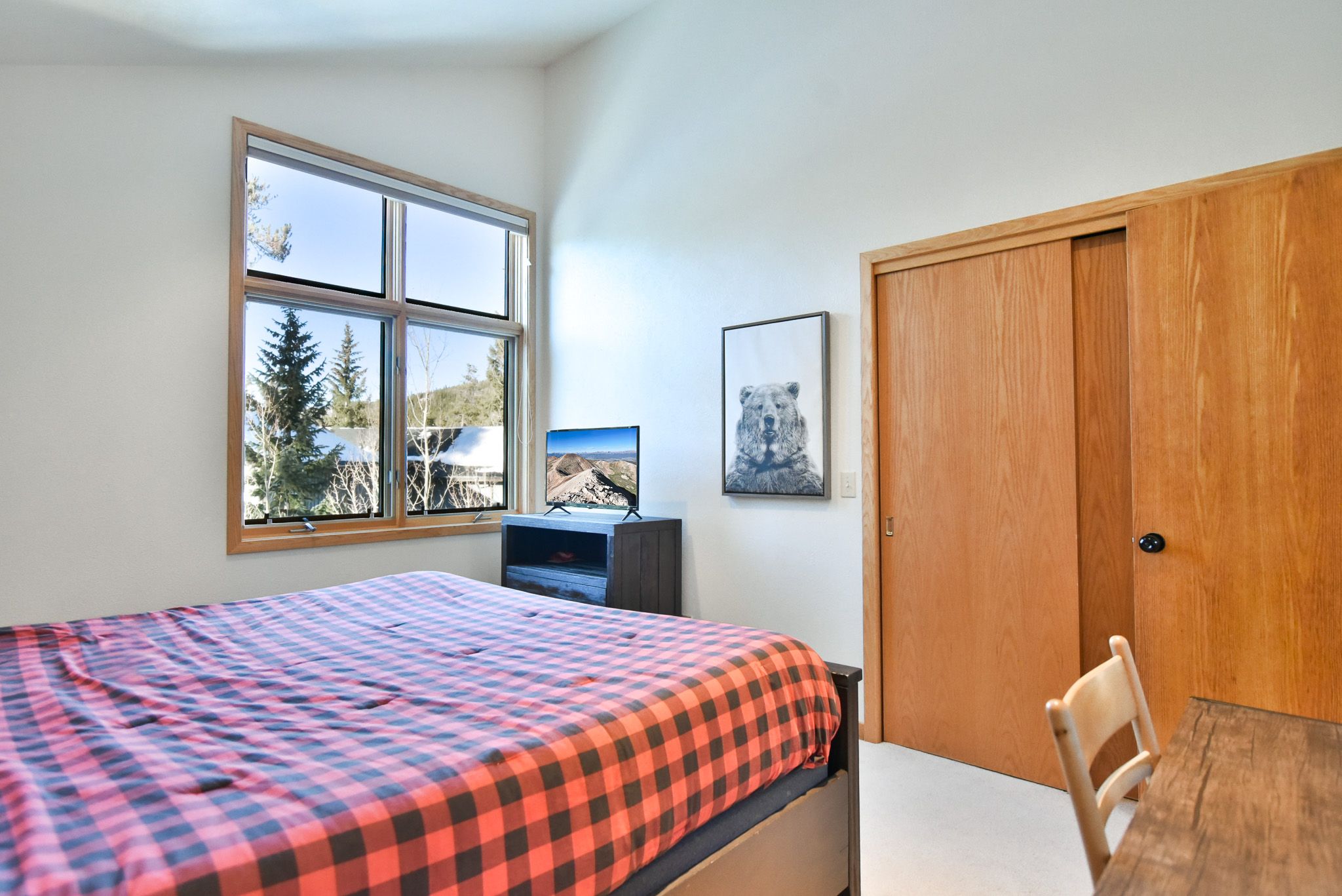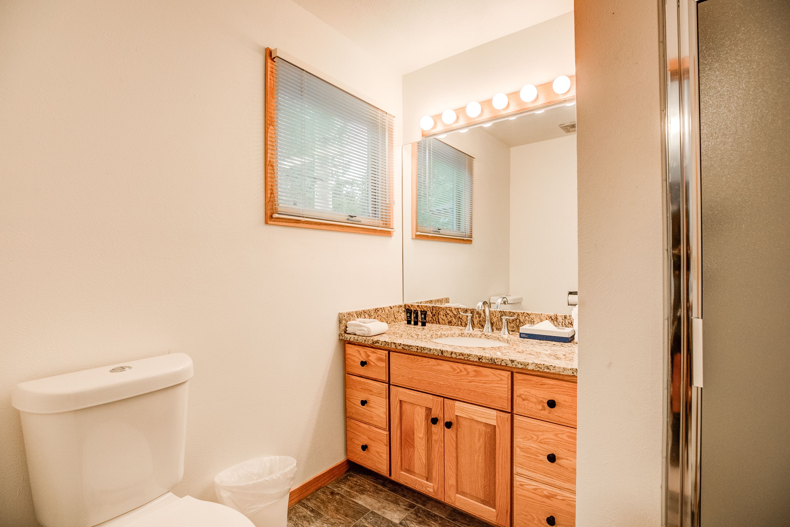 - Suite 3: queen bed, private bathroom with walk-in tile shower, flat-screen TV. (sleeps 2)