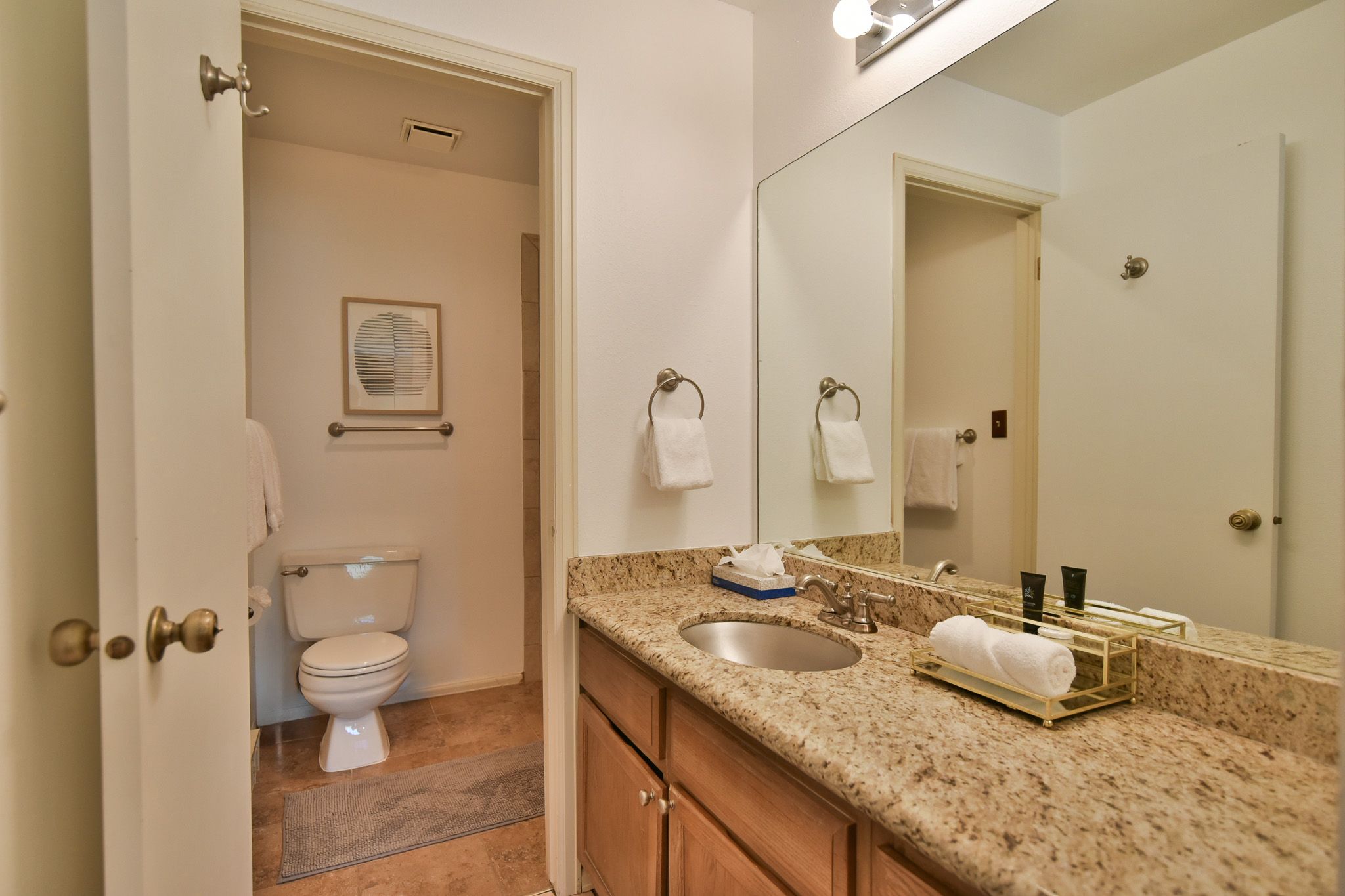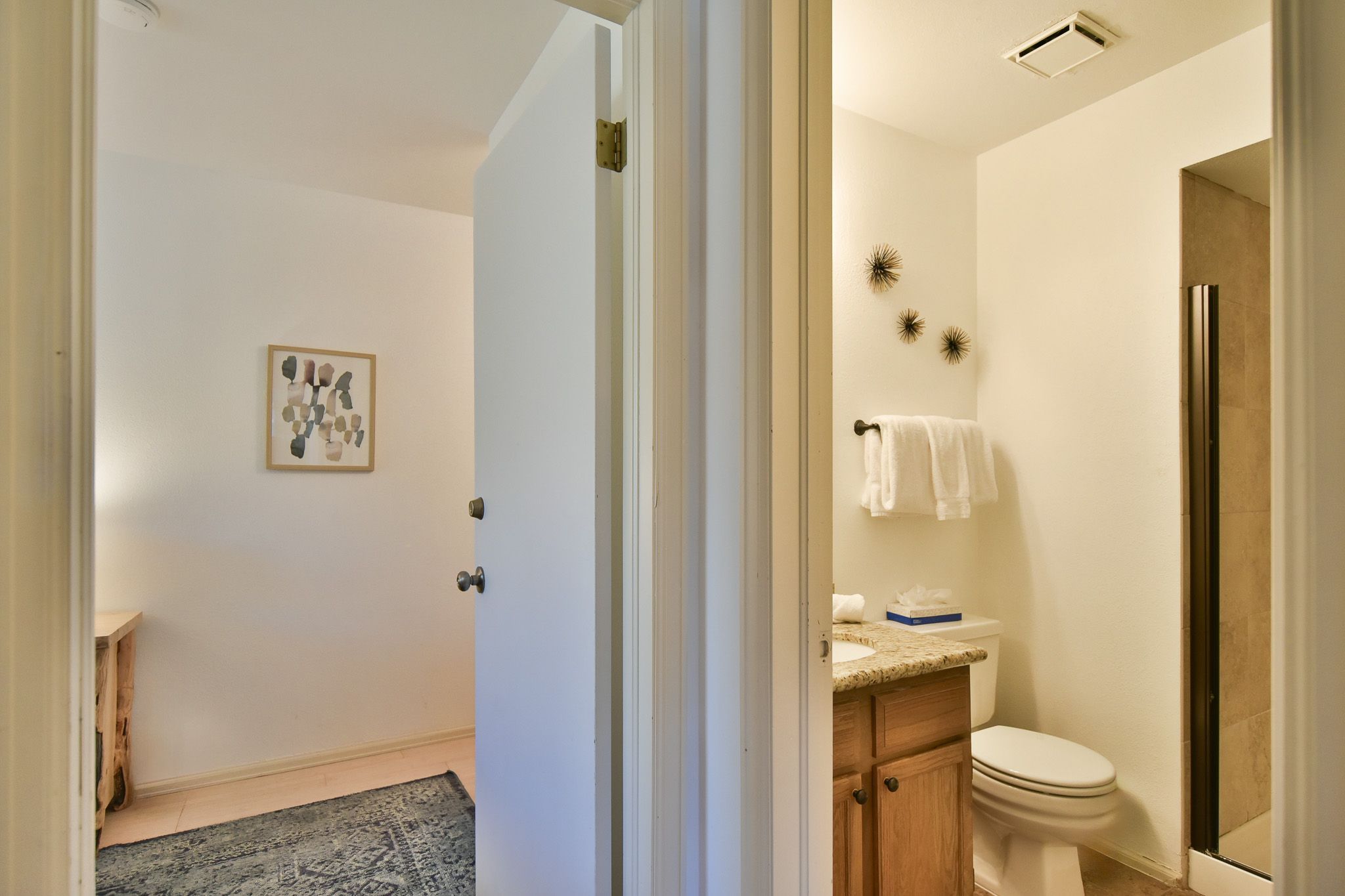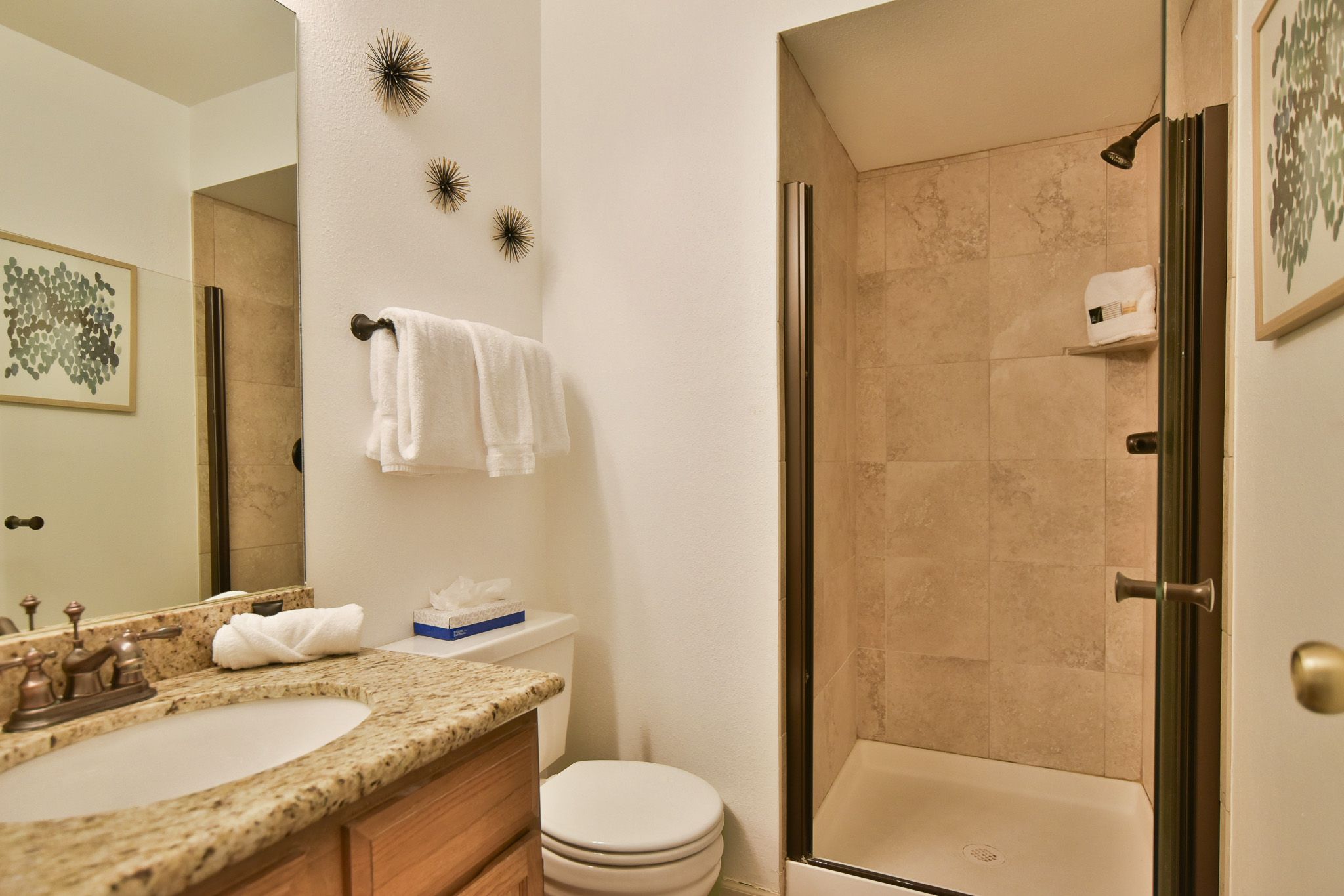 - Bathroom 2: walk-in tile shower w/ toilet.