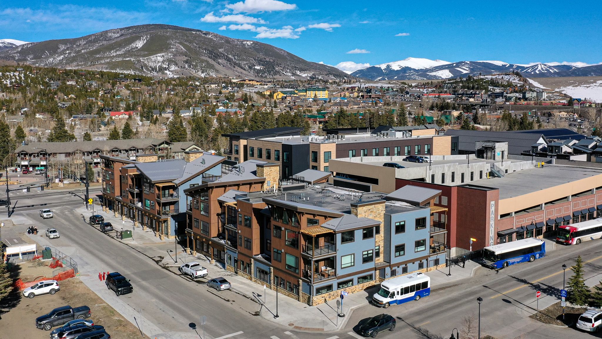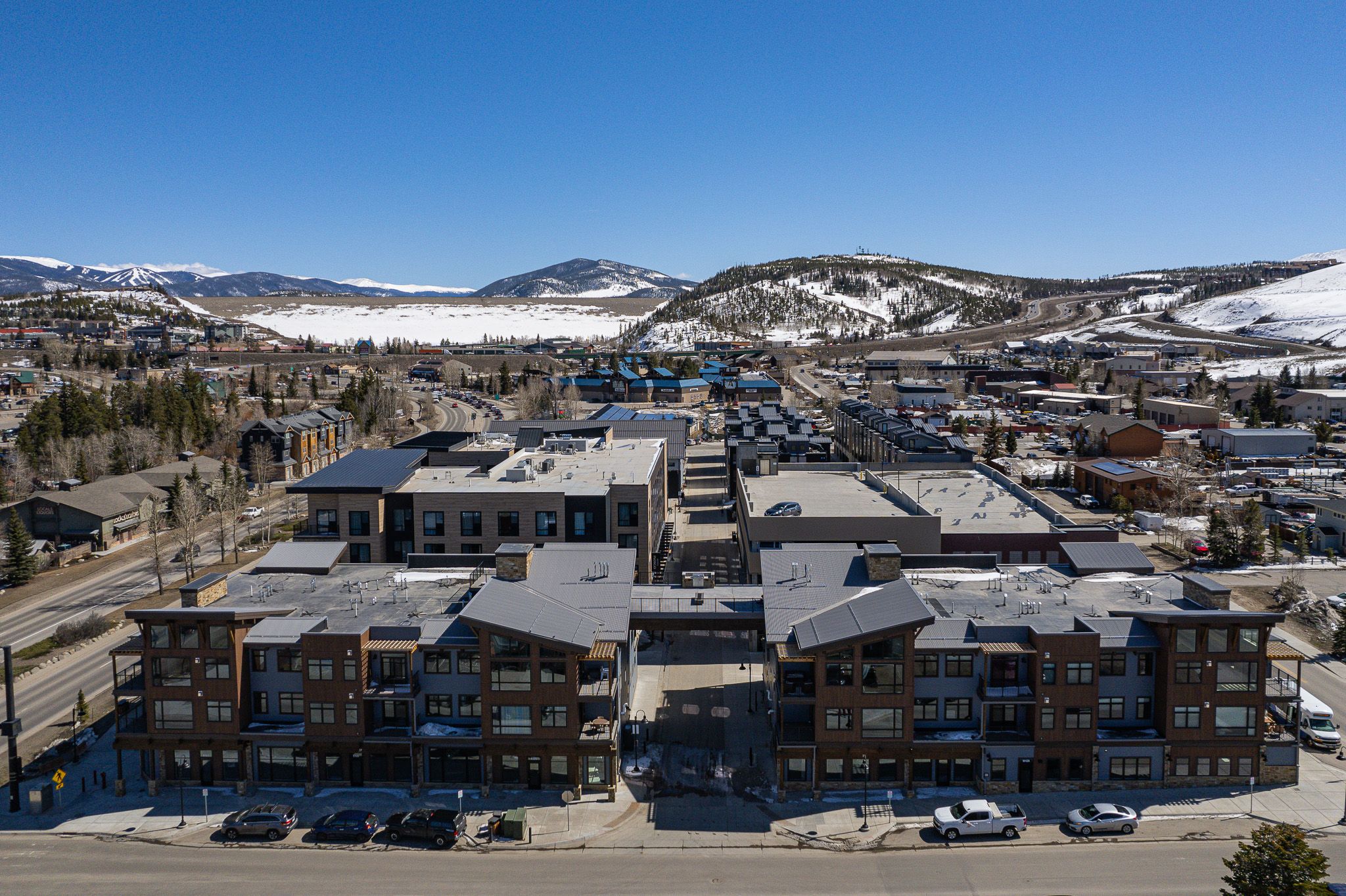 Welcome to your upscale basecamp for your next Summit County adventure! Located in the heart of downtown Silverthorne’s next to Bluebird Market, Skywalk Flats Amphitheater Retreat offers more than a dozen dining options and retail shops right at your doorstep, with additional choices just a short stroll away. Featuring a communal roof top deck with panoramic mountain views, two shared hot tubs and gas firepit, this location has it all. Whether you're hitting the slopes or enjoying summer activities like hiking, biking, or fishing, this condo puts you in the heart of the action.