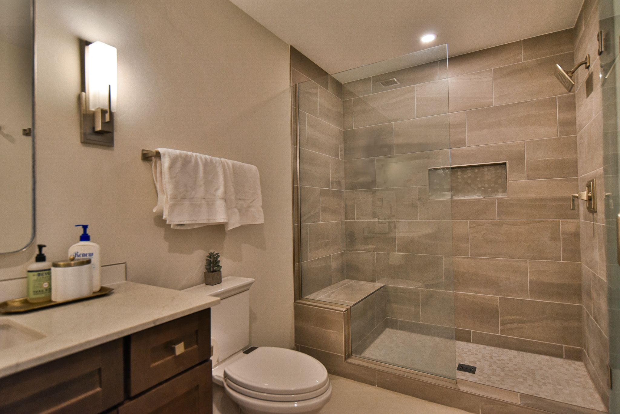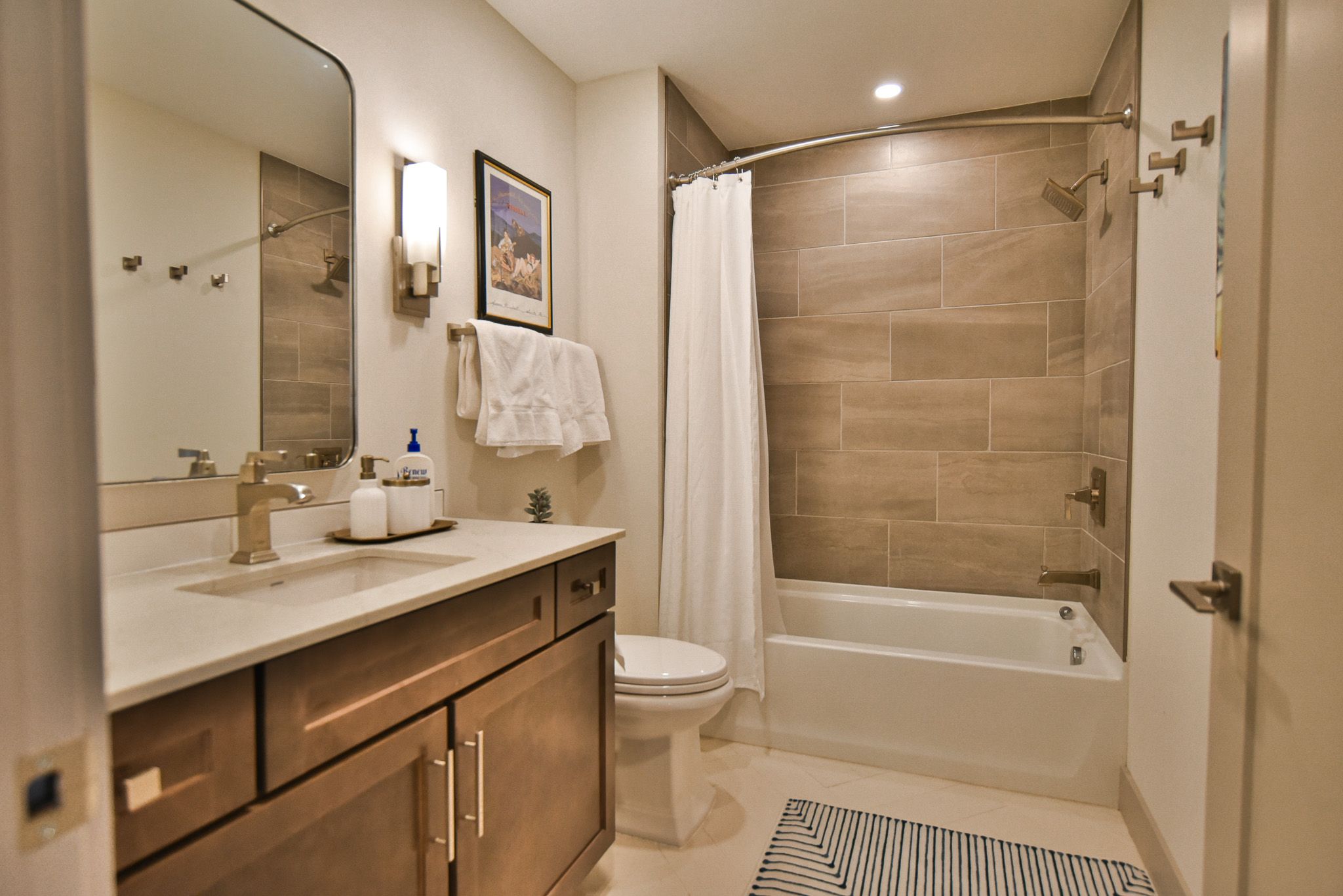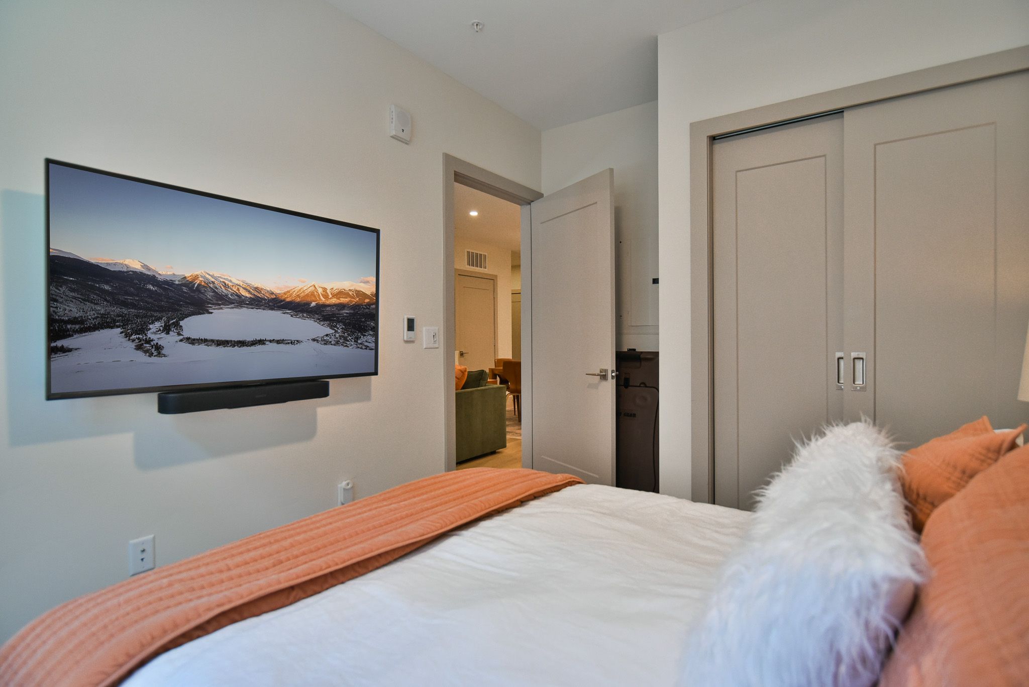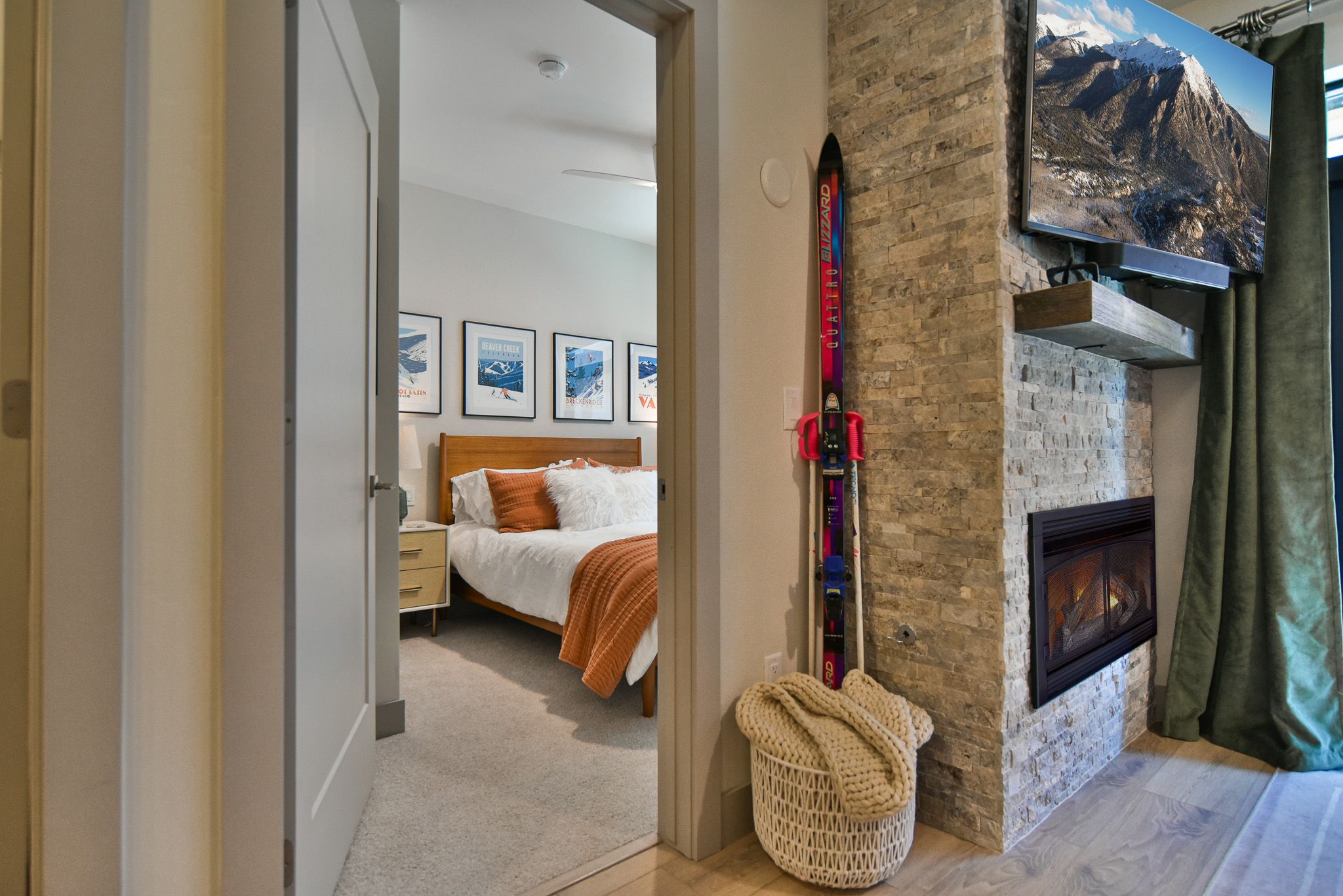 - Master suite: queen bed, private bathroom with walk-in tile shower, Smart TV. (sleeps 2)