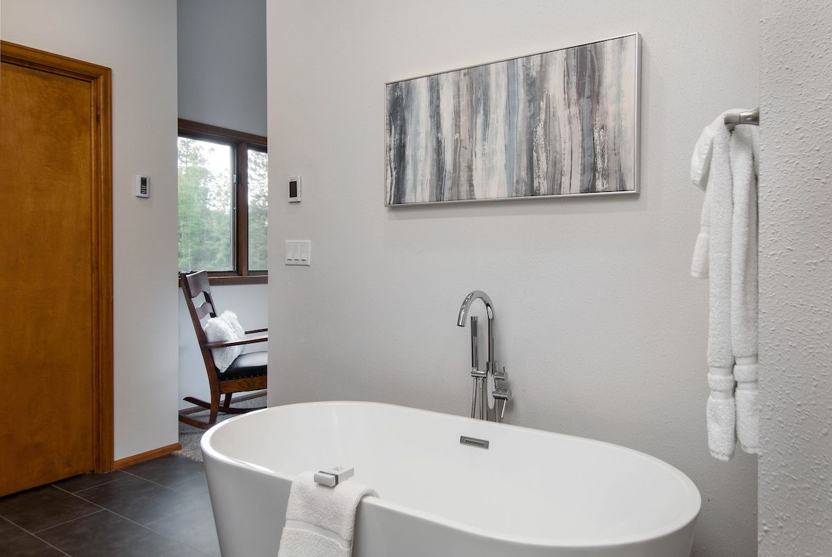 - King master suite: gorgeous room with great views and a king bed and private attached bathroom with two sinks, soaking tub, and tile walk-in shower. (sleeps 2)