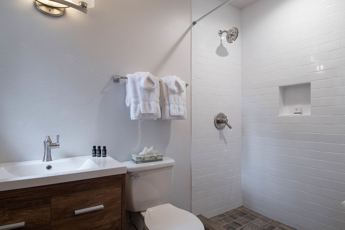 - Full bedroom: two full beds with private attached bathroom with walk-in tile shower. (sleeps 4)