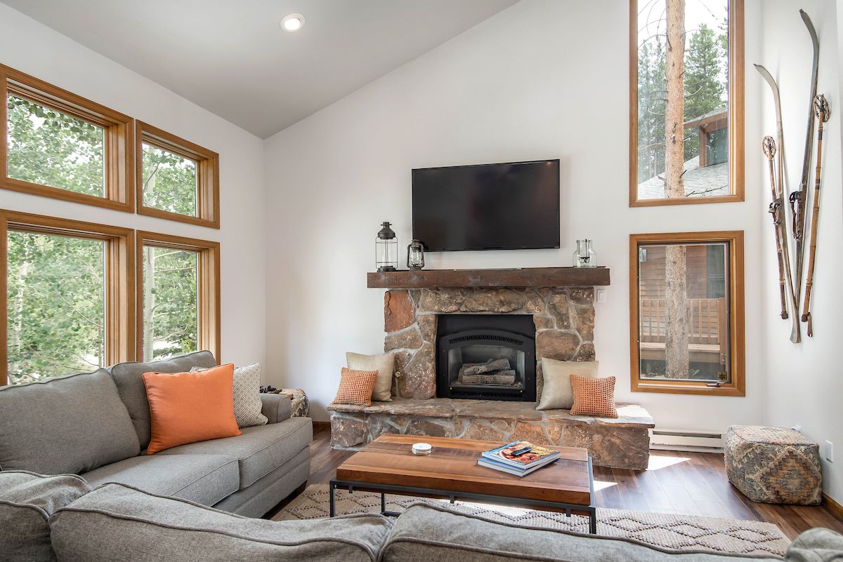 Summit Haven is a 5-bedroom, 4-bathroom premium home is in Breckenridge’s desirable Warriors Mark neighborhood, just a short drive from downtown Breckenridge and the slopes; or you can hop on the free shuttle at the stop just outside the home! Inside, the home features an open concept with the living area, dining room and kitchen flowing together seamlessly. The living area has a large flat-screen TV set above a rock fireplace that’s perfect for catching the game or watching your favorite movie or show. Just outside, the deck has a barbeque grill and private hot tub, making it the perfect place to relax winter or summer.