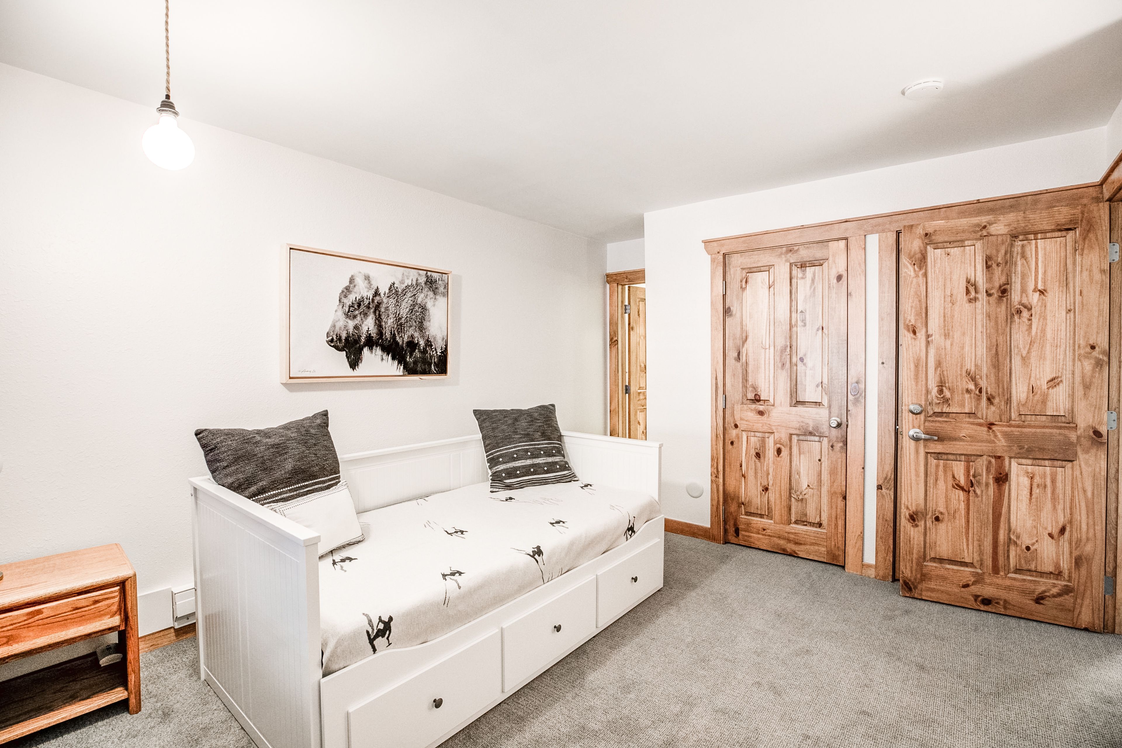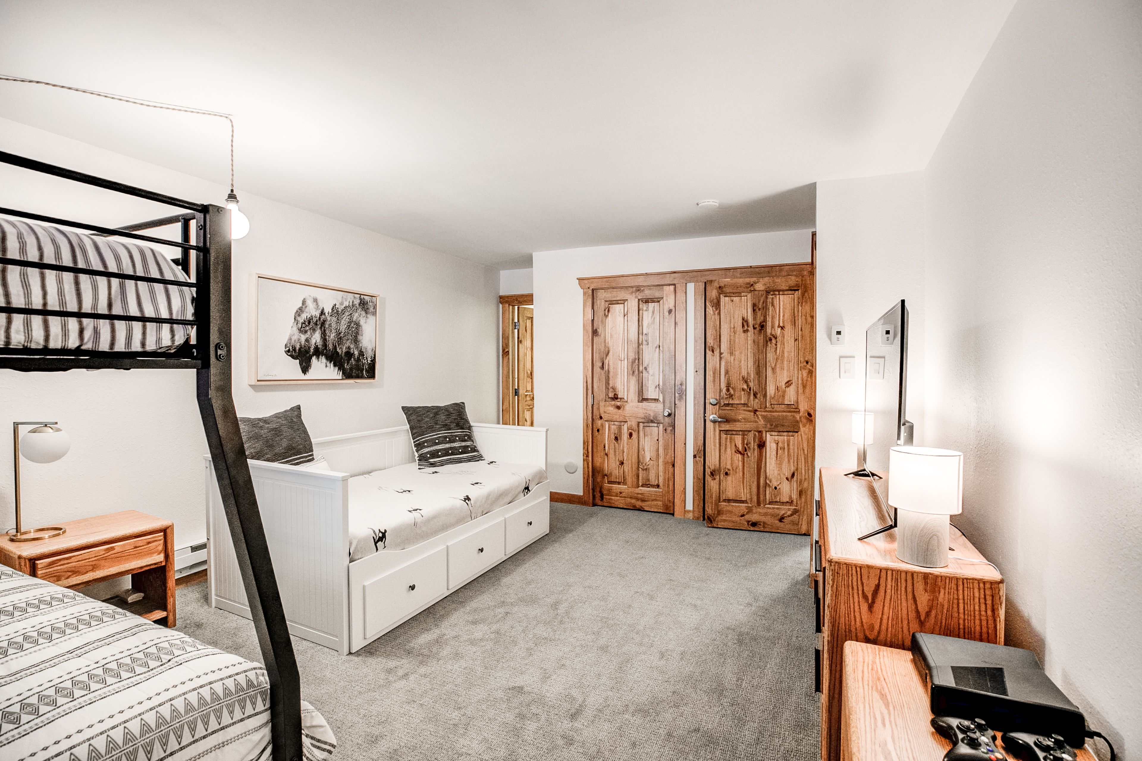 - Suite 2: full-over-queen bunk bed, long twin daybed (converts into king bed), private bathroom with tub/shower, flat-screen tv. (sleeps 6)