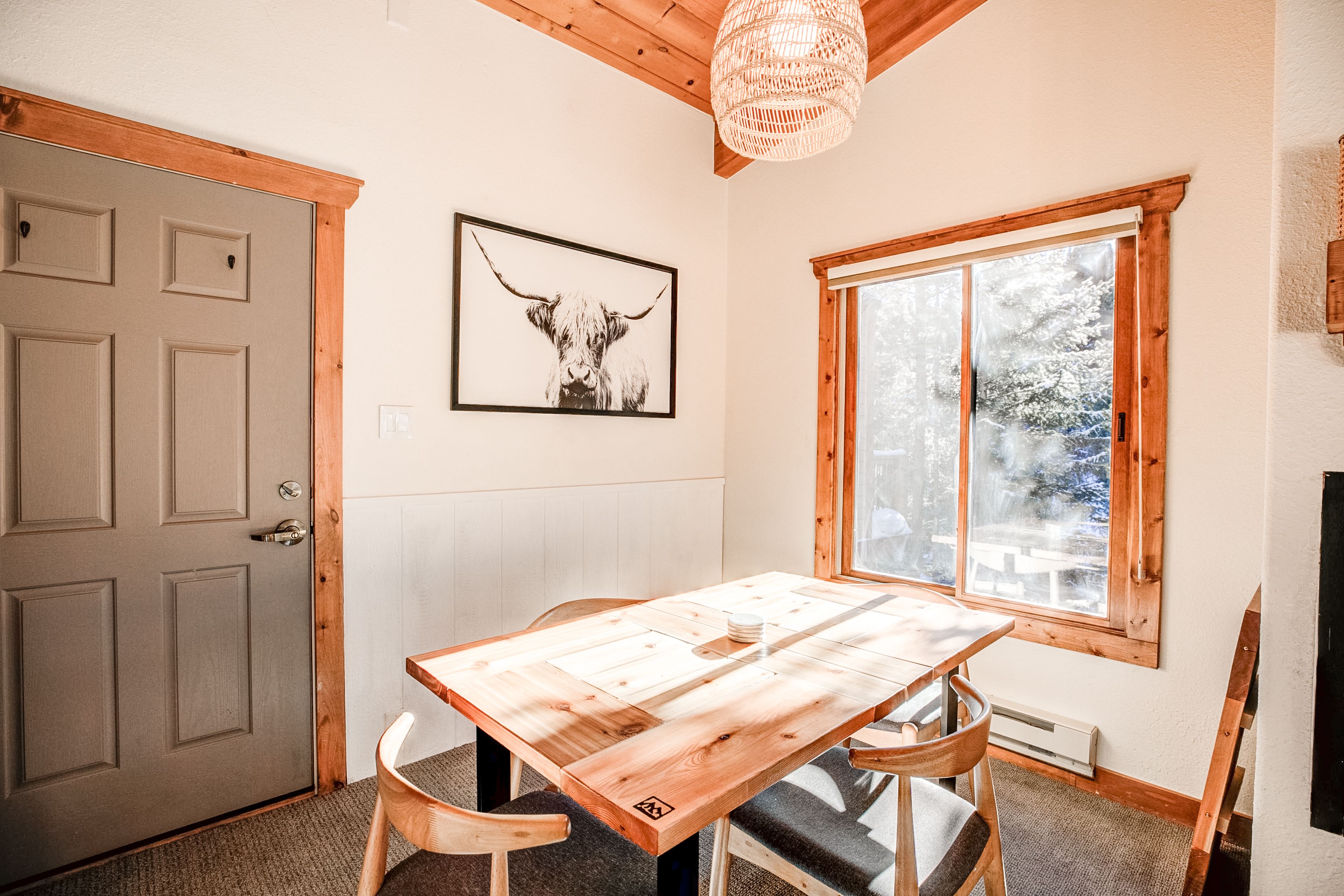 This 2-bedroom + loft, 3-bathroom deluxe condo is a perfect retreat for families or groups of up to 8 people — and with both bedrooms being suites with private bathrooms, it’s perfect for two couples/families to share! Stepping into the living room, you’ll love the sight and sound of the Blue River from your deck. You’ll enjoy the gas fireplace, too! The fully equipped kitchen has quartz counters, stainless-steel appliances, and all the gear you’ll need to keep your group happy and fed. The dining table has seating for up to eight, and there’s room for three more at the counter.