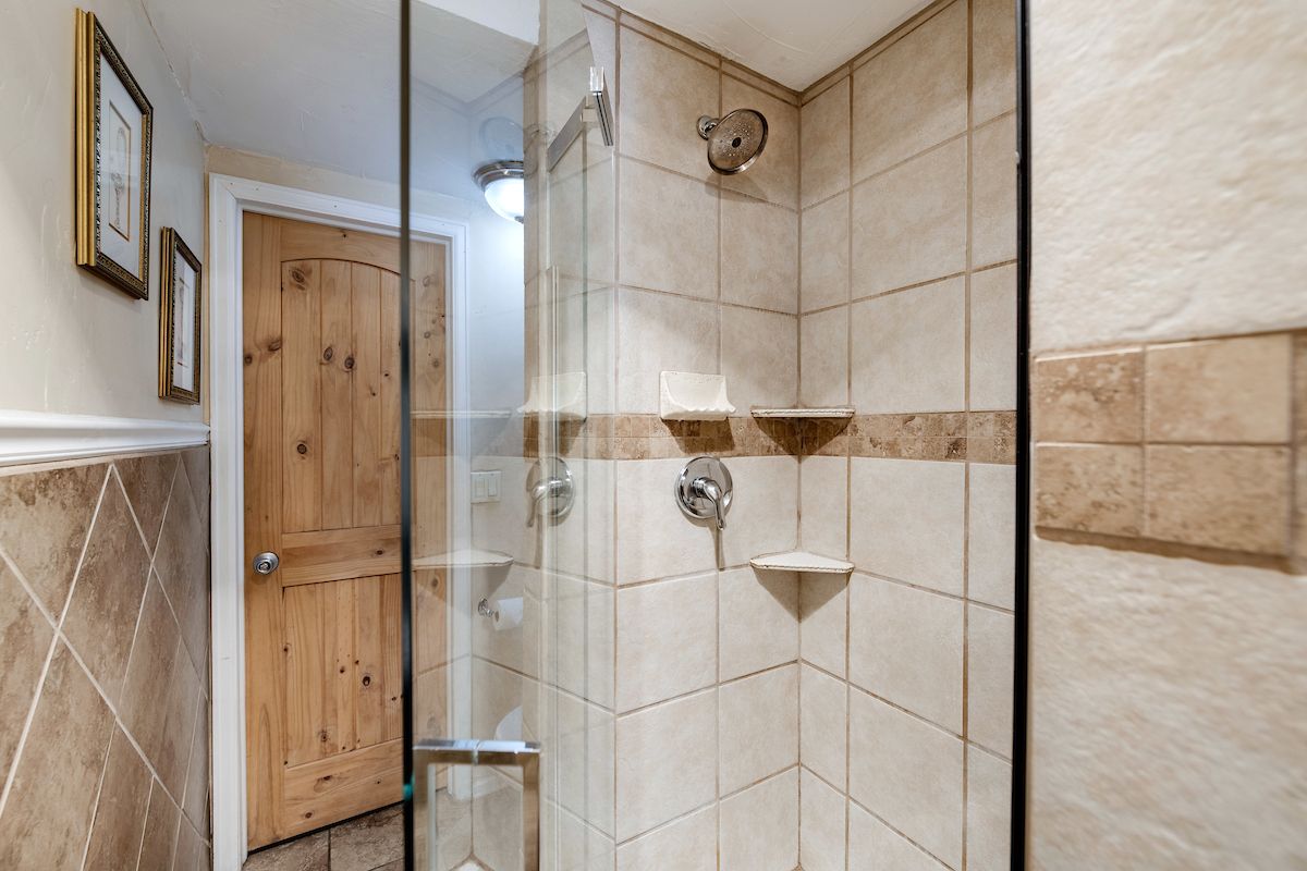 - Queen master suite: queen bed, attached bathroom with walk-in tile shower. (sleeps 2)