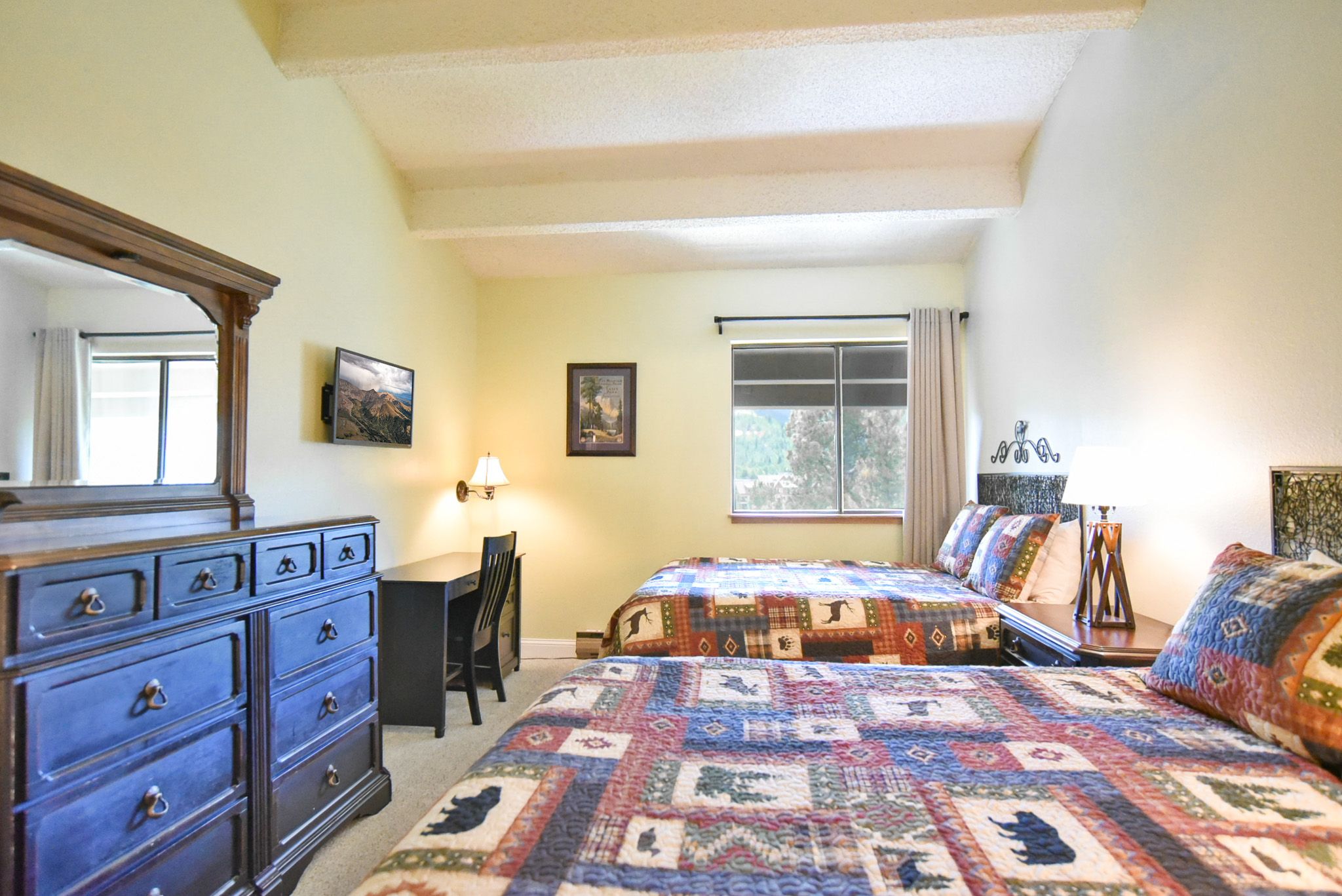 • Dual Queen Suite: two-queen beds, workstation w/ chair, smart tv, mountain views, private en-suite bathroom w/ shower/tub combo. (sleeps 4)