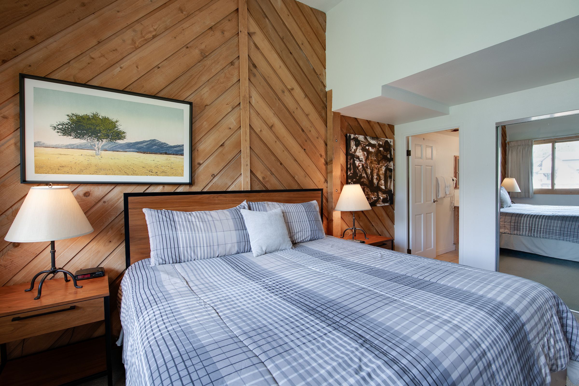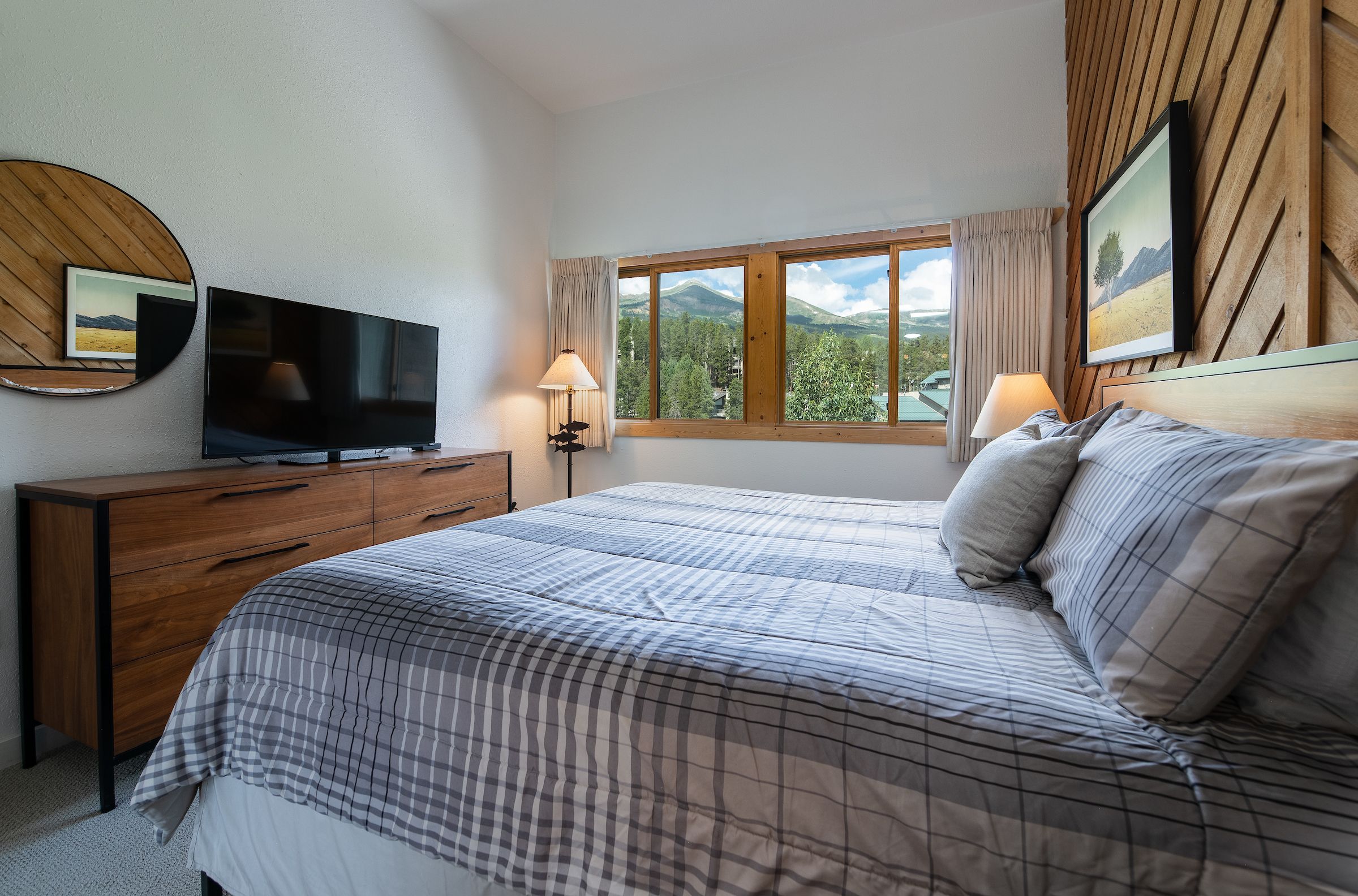 -  Master suite: king bed, private bathroom with walk-in tile shower, flat-screen TV, mountain views. (sleeps 4)