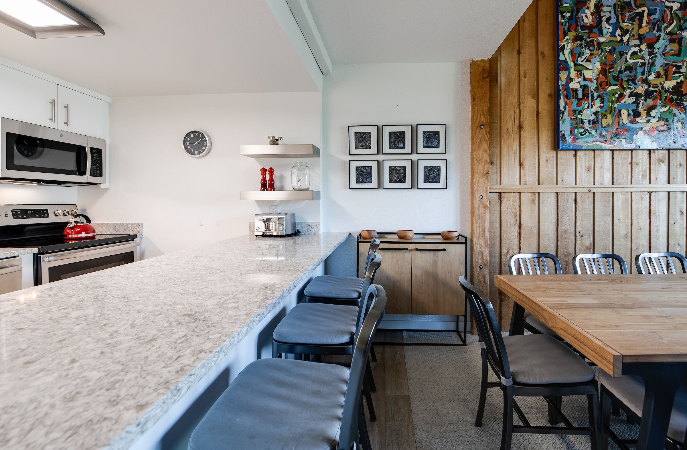 There’s a desk/work area in the upstairs den for catching up on emails. You’ll also enjoy the shared hot tub and access to the Upper Village Pool and hot tubs, as well as shared laundry facilities and complimentary Wi-Fi throughout the home. And like all Summit Mountain Rental properties, we supply all linens and basic toiletries, and each property is professionally cleaned and inspected before each arrival. You’ll also sleep well knowing our helpful staff is on call 24-hours a day so your vacation can be as hassle free as possible.