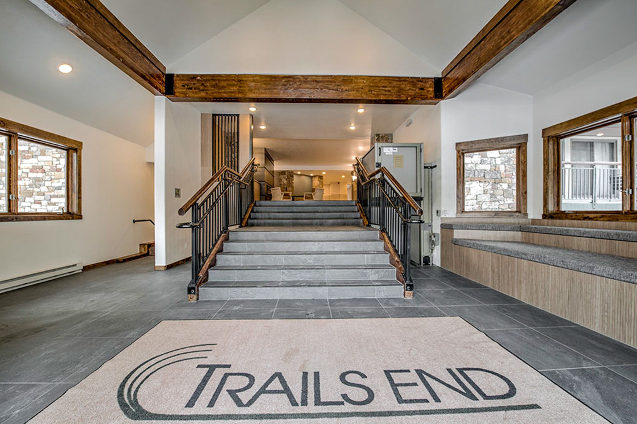 Trails End Easy Rest Condo is a 1-bedroom, 1-bathroom end-unit condo that is perfect for groups of up to four. In the living area, there’s a gas fireplace and a large flat-screen TV; it’s the perfect place to relax and brag about your day on the slopes. There’s a patio to take in the mountain air, too. And you have a full kitchen to make après ski snacks and meals when you’re not enjoying Breck’s nearby dining options. There's seating for five at the counter.