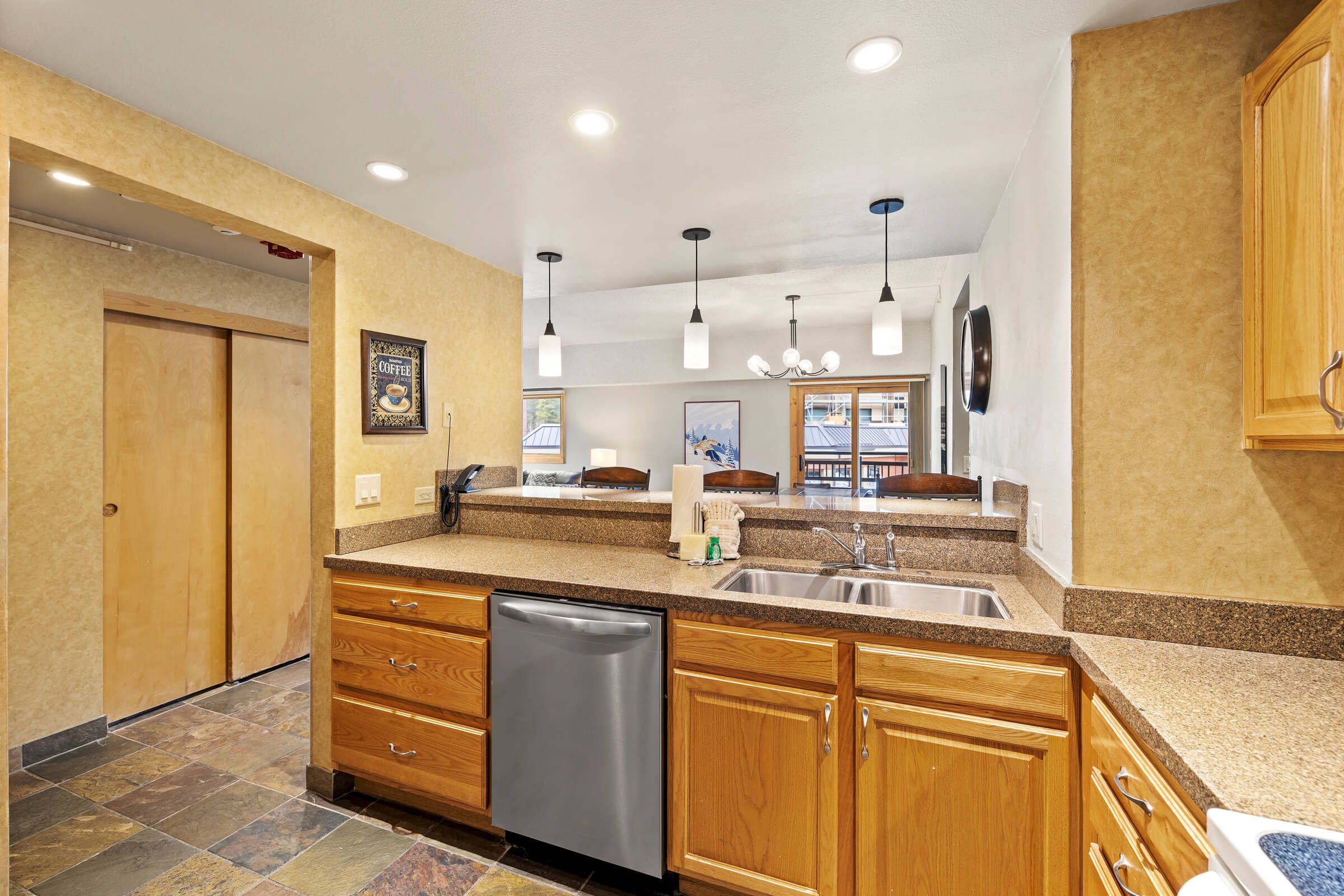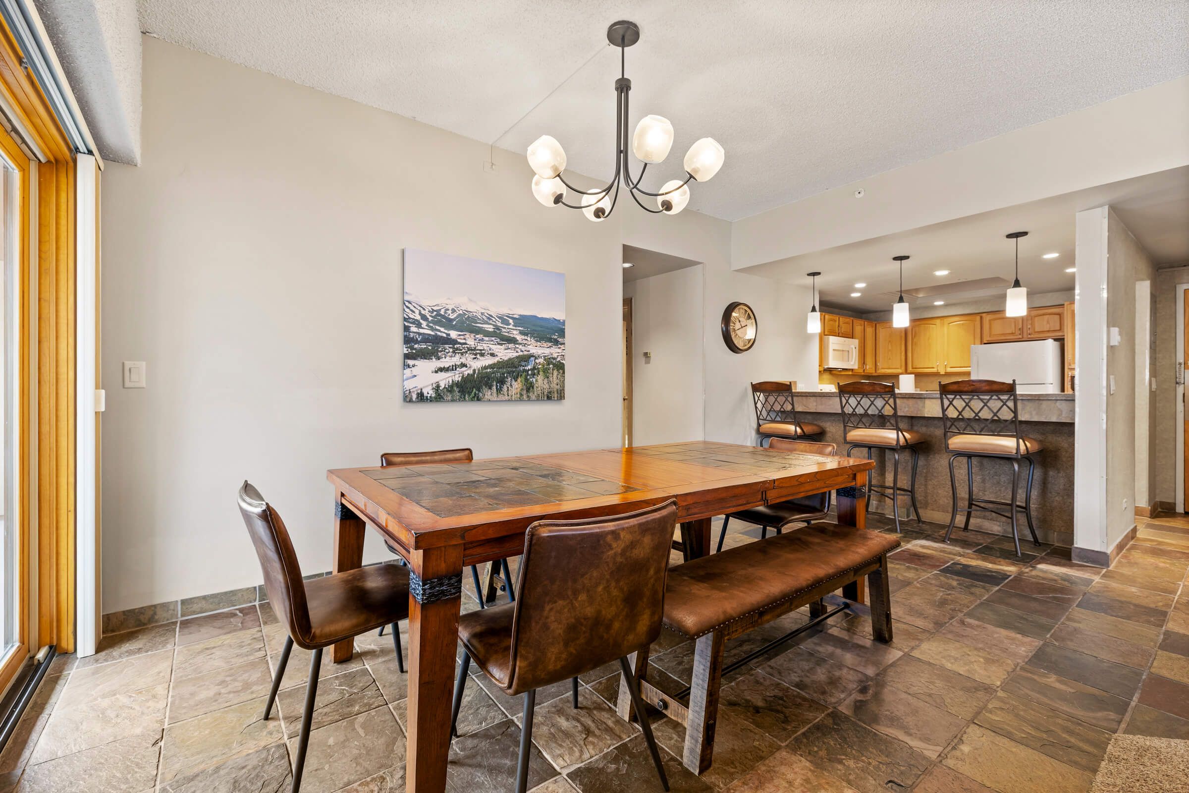 Inside, you’ll find a spacious and comfortable layout designed for gathering and relaxation. The open living area features a gas fireplace, large smart TV, and plenty of seating for everyone to spread out. There’s also a generous dining table for family meals, plus a well-equipped kitchen for those nights you’d rather stay in and cook. With its warm mountain charm and thoughtful touches throughout, this condo makes a welcoming home base for families or groups looking to enjoy Breckenridge in every season.