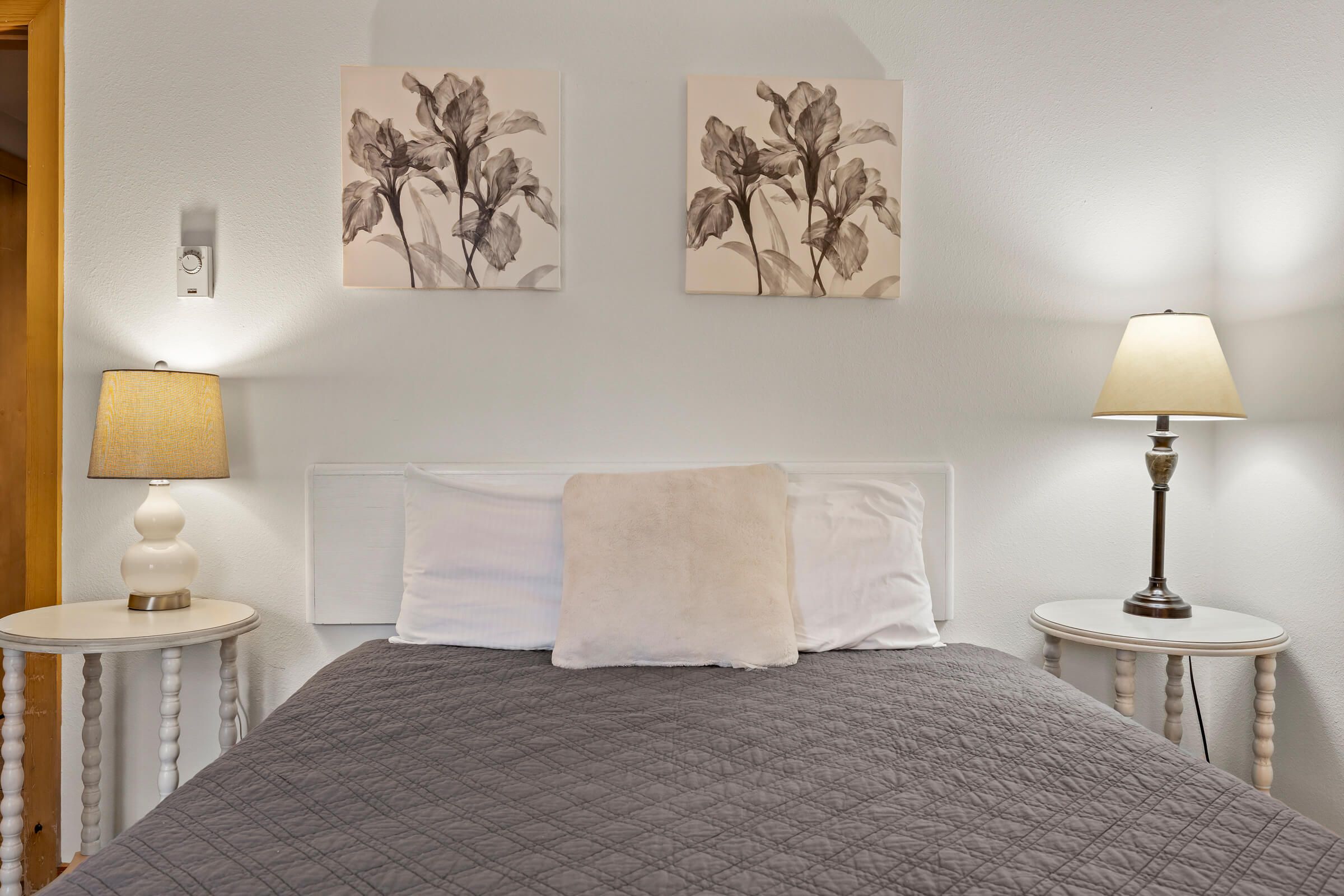 • Queen Bedroom: queen bed, tv, patio access. (sleeps 2)