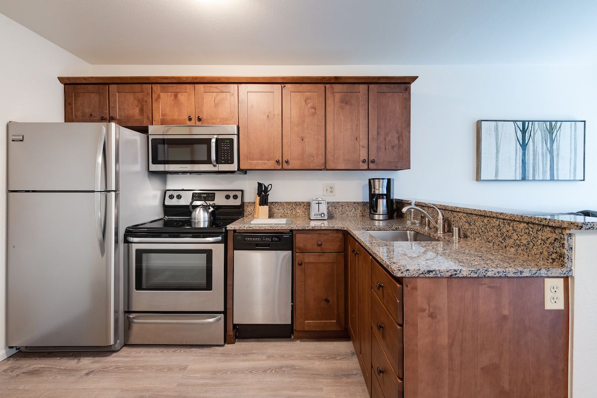 Guests at Wildwood Suites enjoy thoughtful amenities designed to make your stay seamless. There’s complimentary Wi-Fi, shared laundry facilities, and one parking space included. On-site, you’ll find a large outdoor hot tub, an indoor dry sauna, and even massage services available for the ultimate post-adventure relaxation. And with Summit Mountain Rentals, you’ll enjoy professionally cleaned accommodations stocked with fresh linens, towels, and hotel-quality toiletries—plus 24/7 support from our friendly local team.