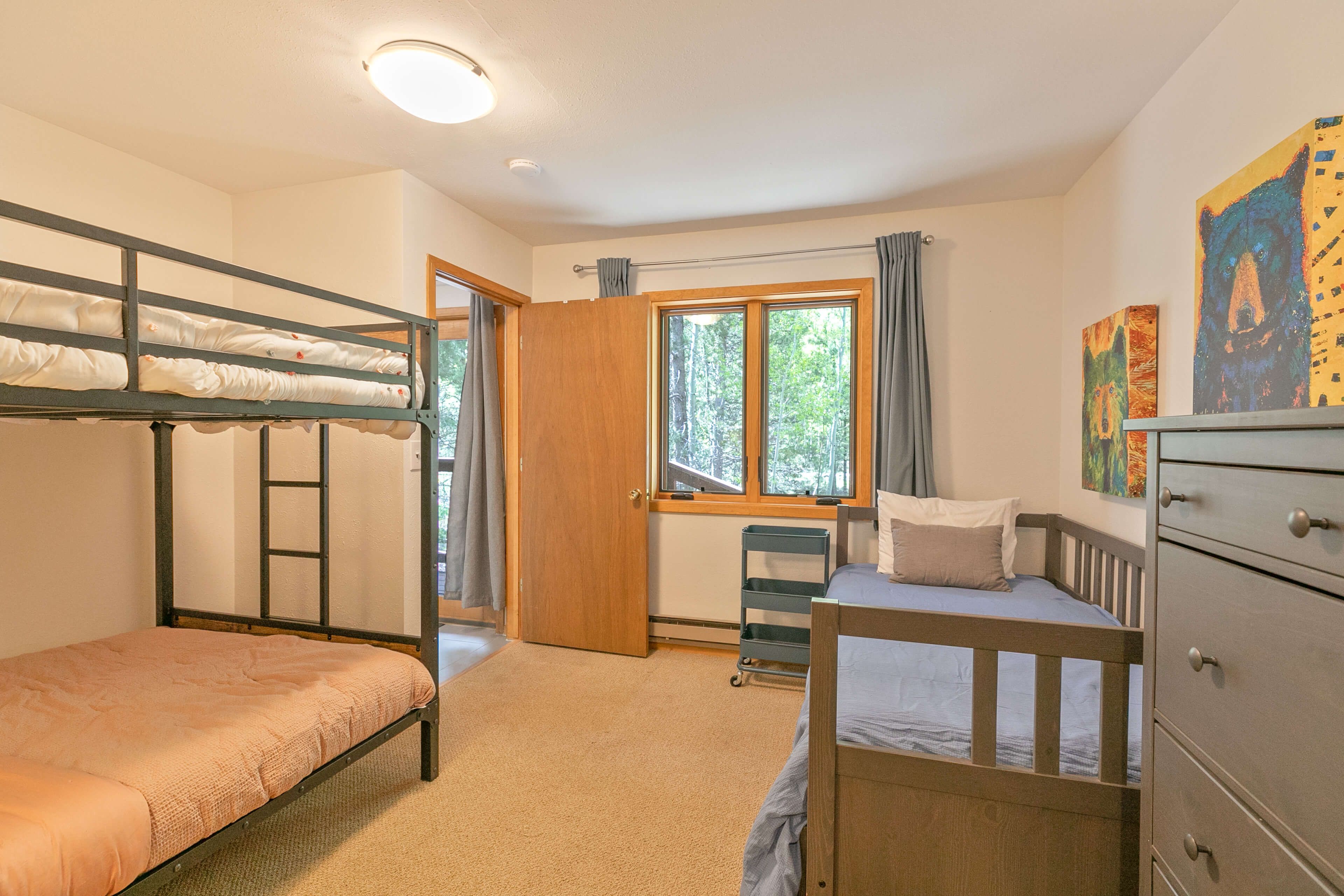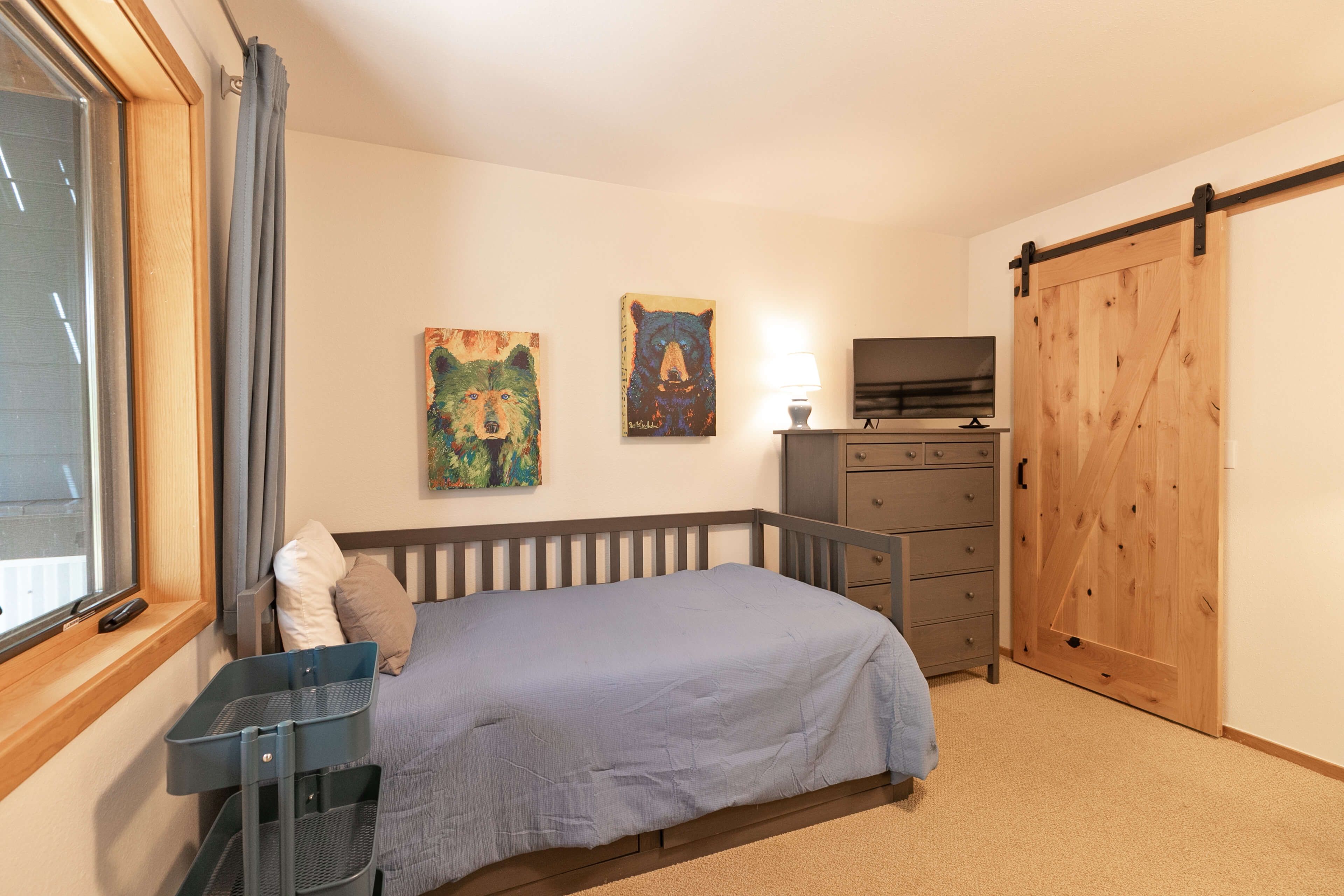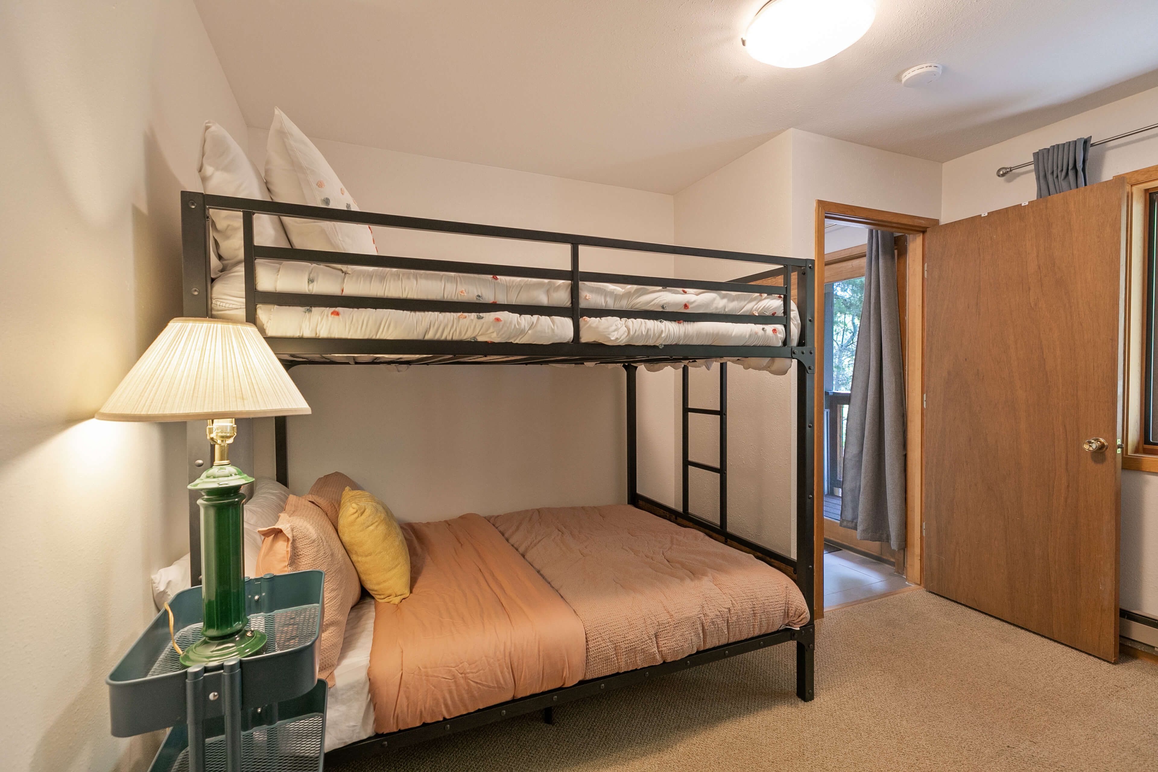 - Bedroom 2: full-over-full bunk bed, twin daybed, flat-screen TV. (sleeps 5)