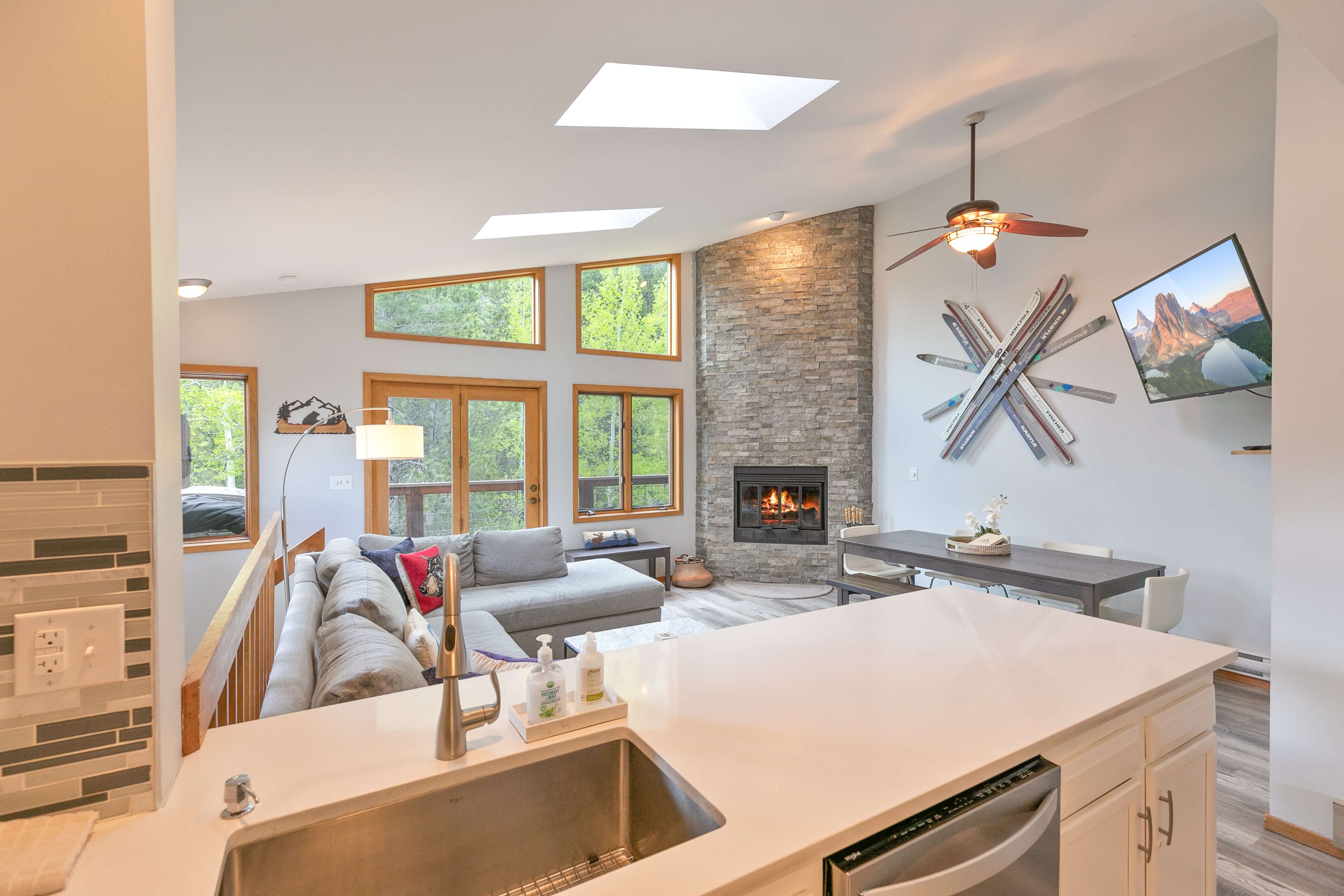What a fantastic year-round location! The shuttle bus to the slopes stops in front of the complex, and in the summer, the bike path is just outside for easy access to the Frisco Marina and more. All the restaurants and shops on Friso’s historic Main Street are within easy strolling distance as well. You and your group will love this place! Windwood Townhome also has access to a shared hot tub so you and the gang can relax after a long day of adventures.Â