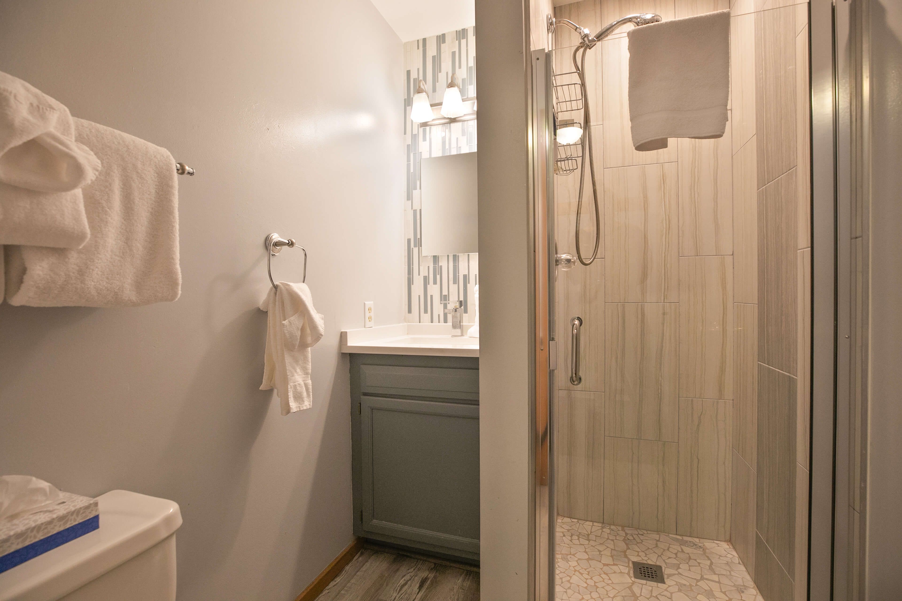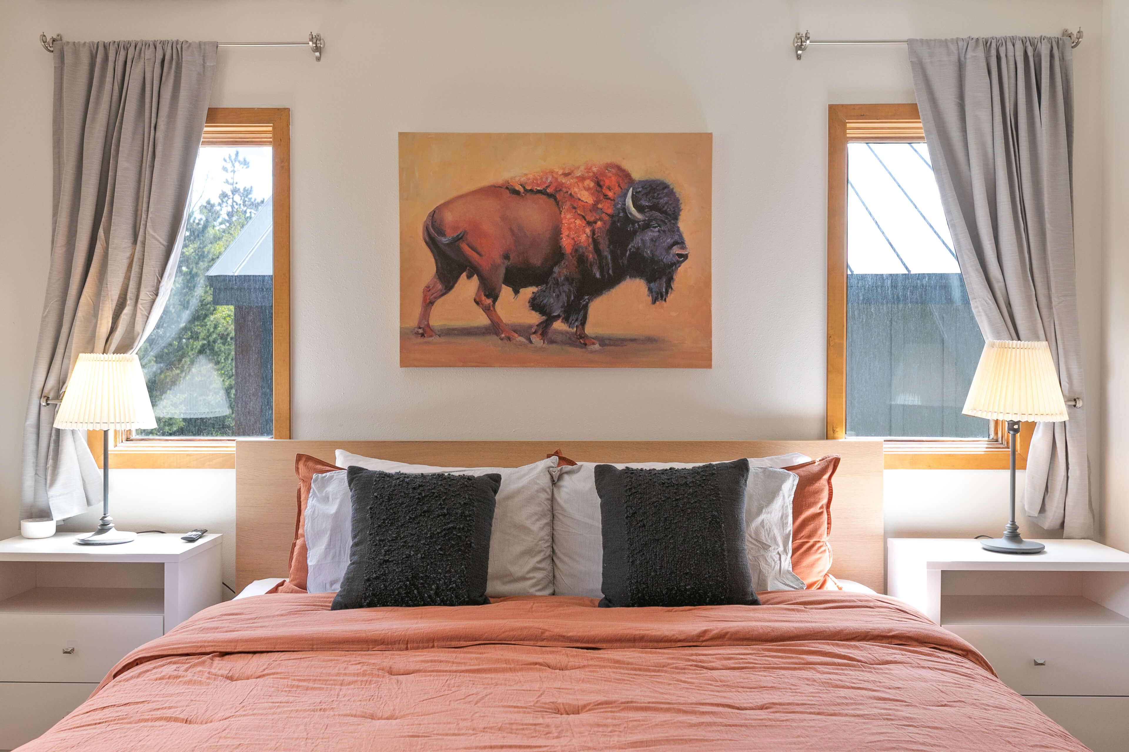 - Master suite: king bed, private bathroom with tub/shower. Smart TV. (sleeps 2)