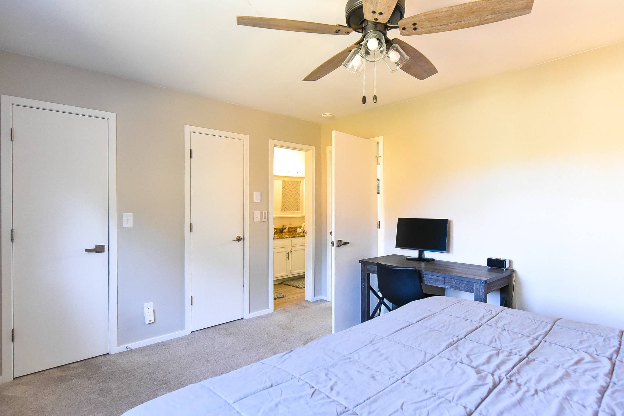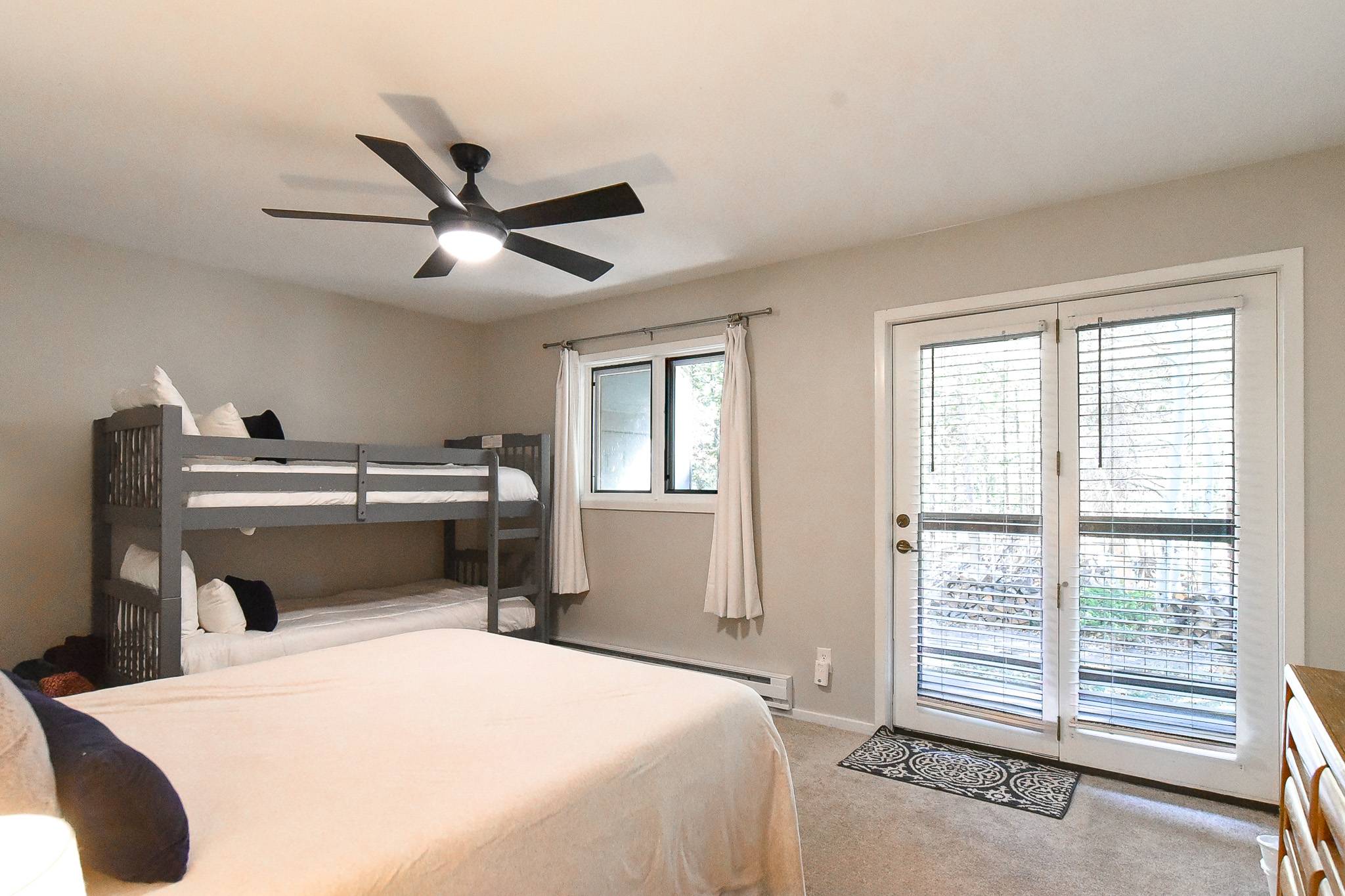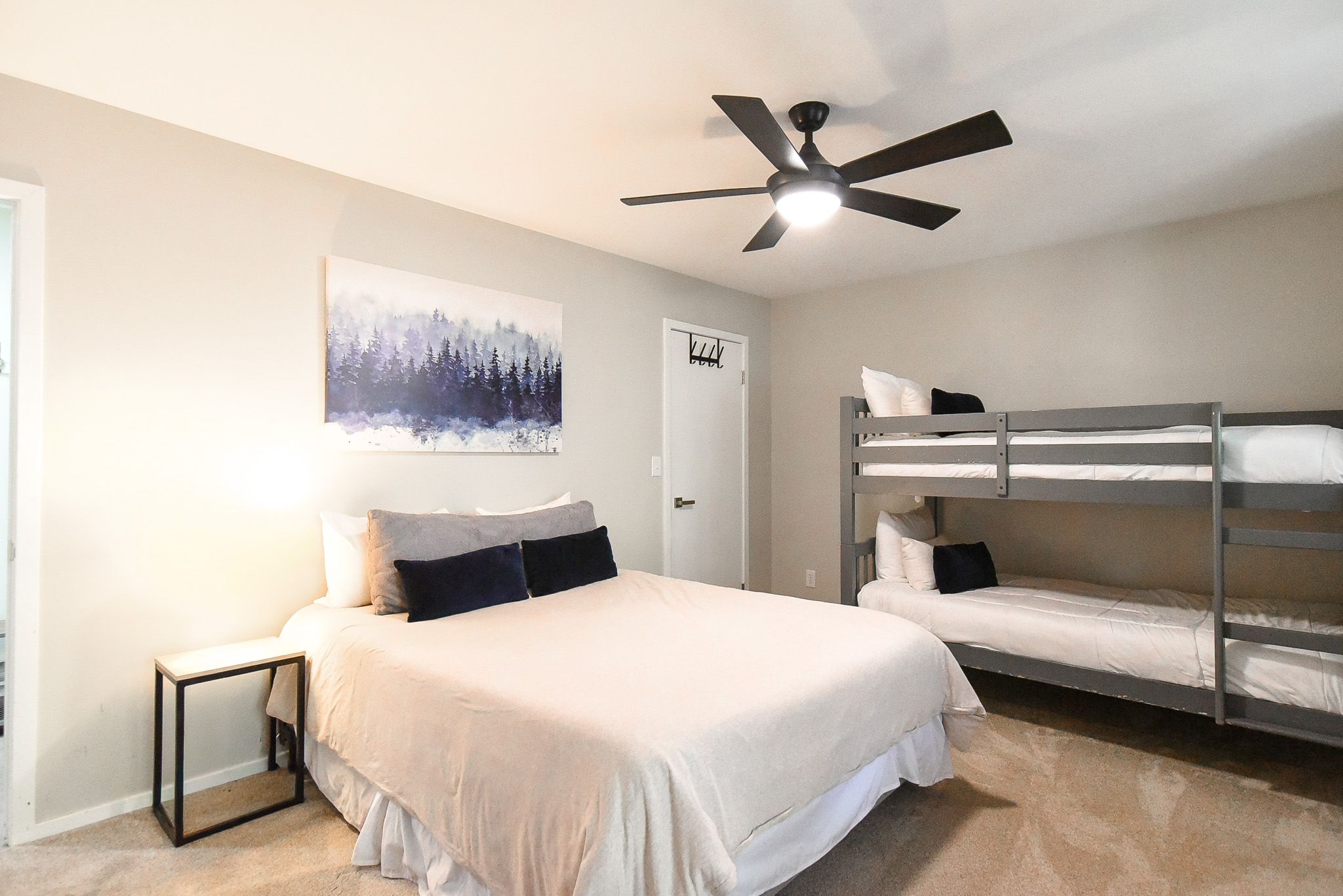 - Bedroom 2: queen bed, twin-over-twin bunk bed, patio access, smart tv. (sleeps 4)